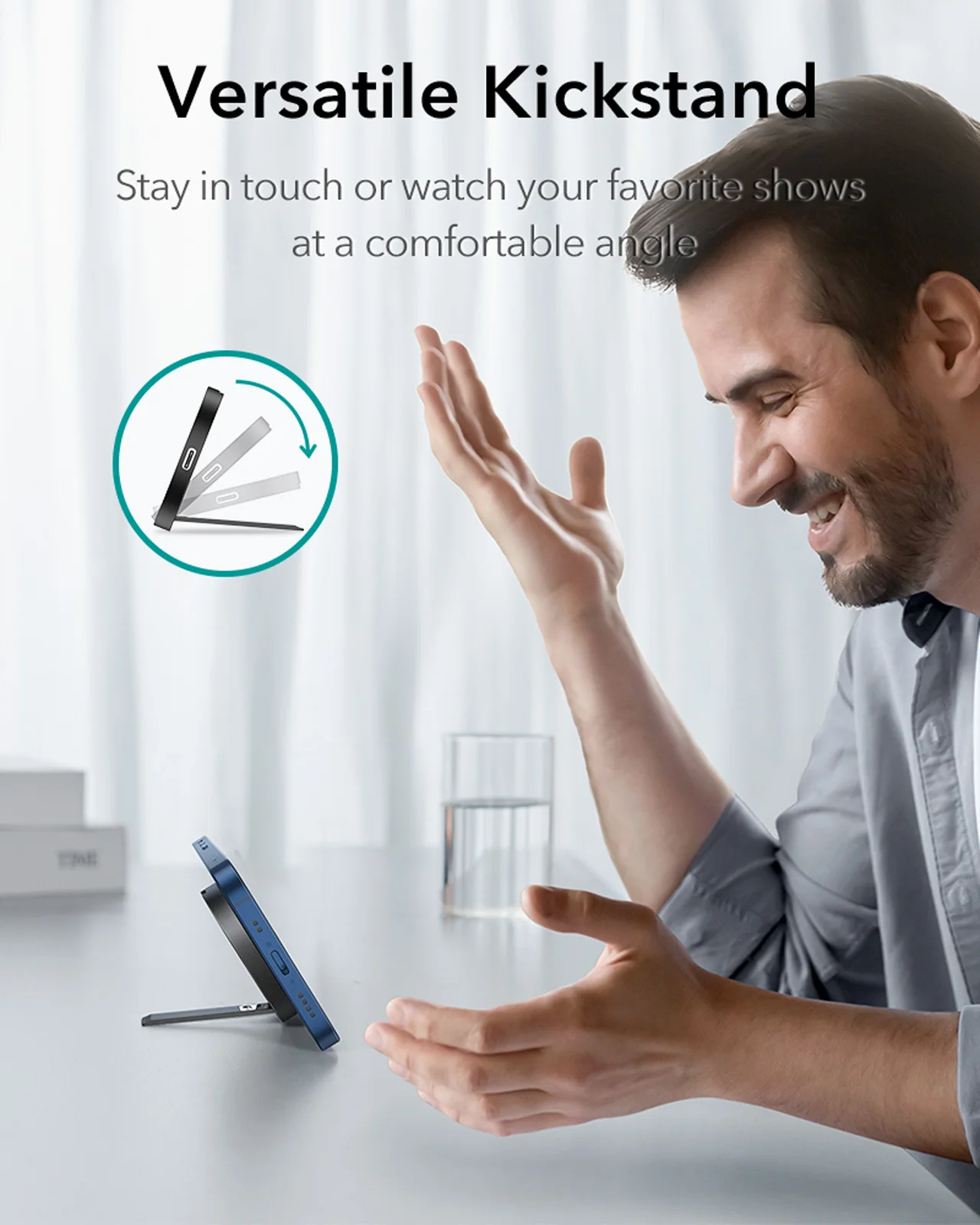Оставайтесь на связи или Смотрите любимые шоу под удобным углом. Стабильный и регулируемый: Поворот между портретным и ландшафтным режимом или любым углом между ними. Подставка надежно удерживает iPhone 12.