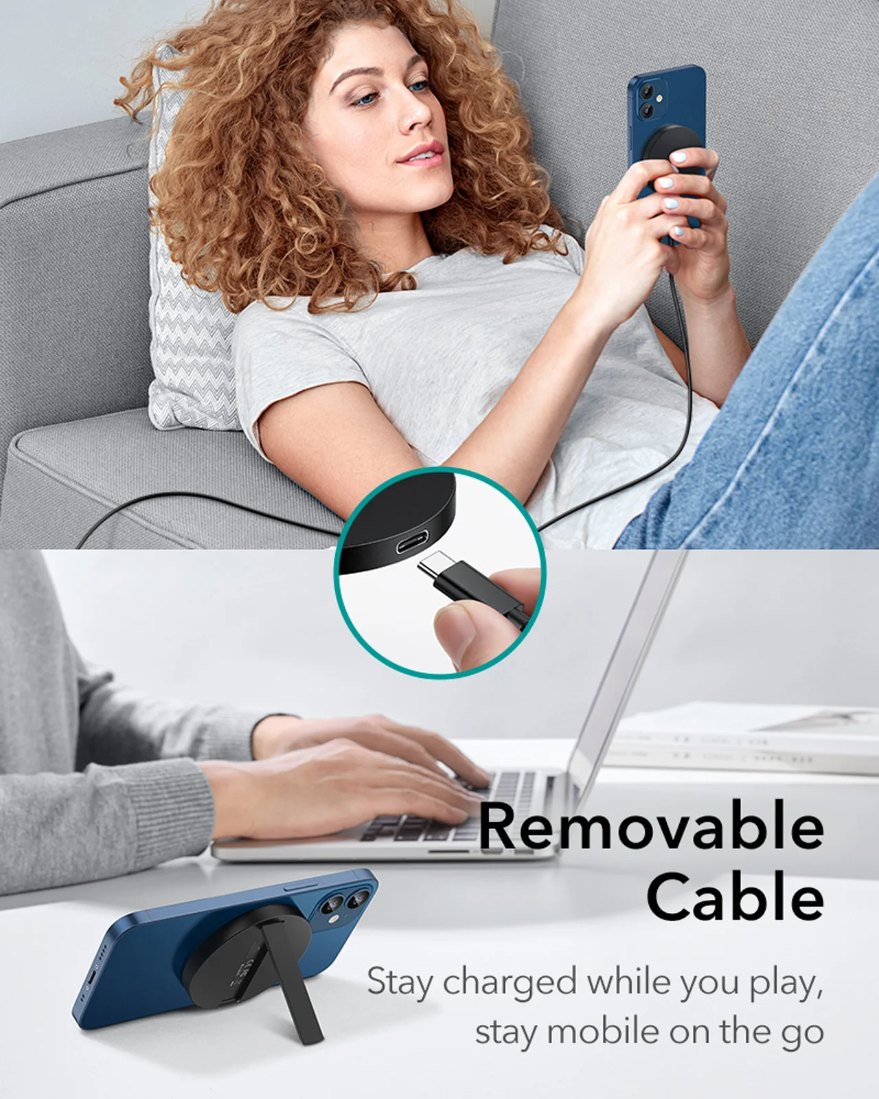 Съемный 5 футов (1,5 м) Кабель с разъемом usb-c дает вам свободу, чтобы двигаться вокруг или на паузу кабель переносной стенд.