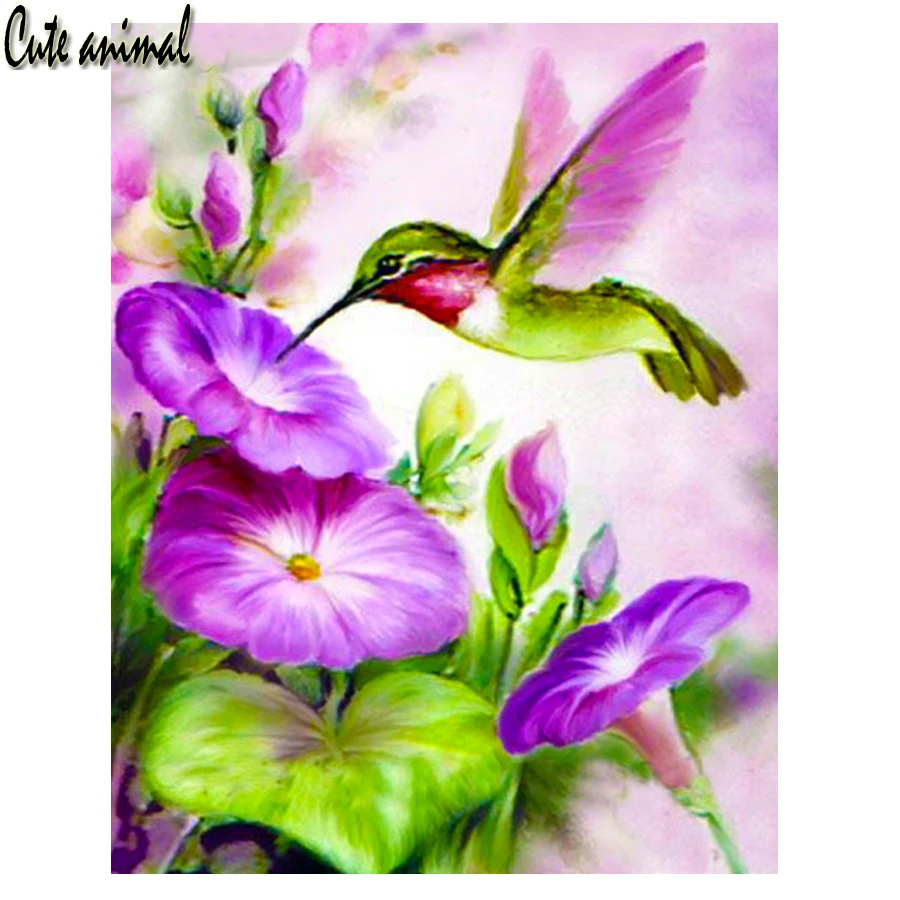 5D алмазная картина фиолетовые цветы Diy Алмазная вышивка полностью квадратная дрель мозаика Колибри вышивка крестиком ручной работы Декор подарок