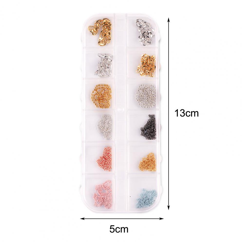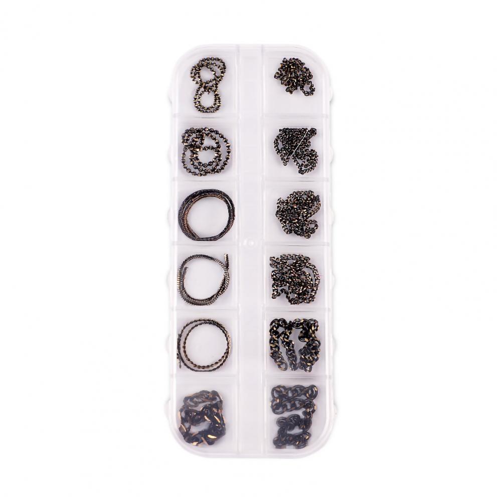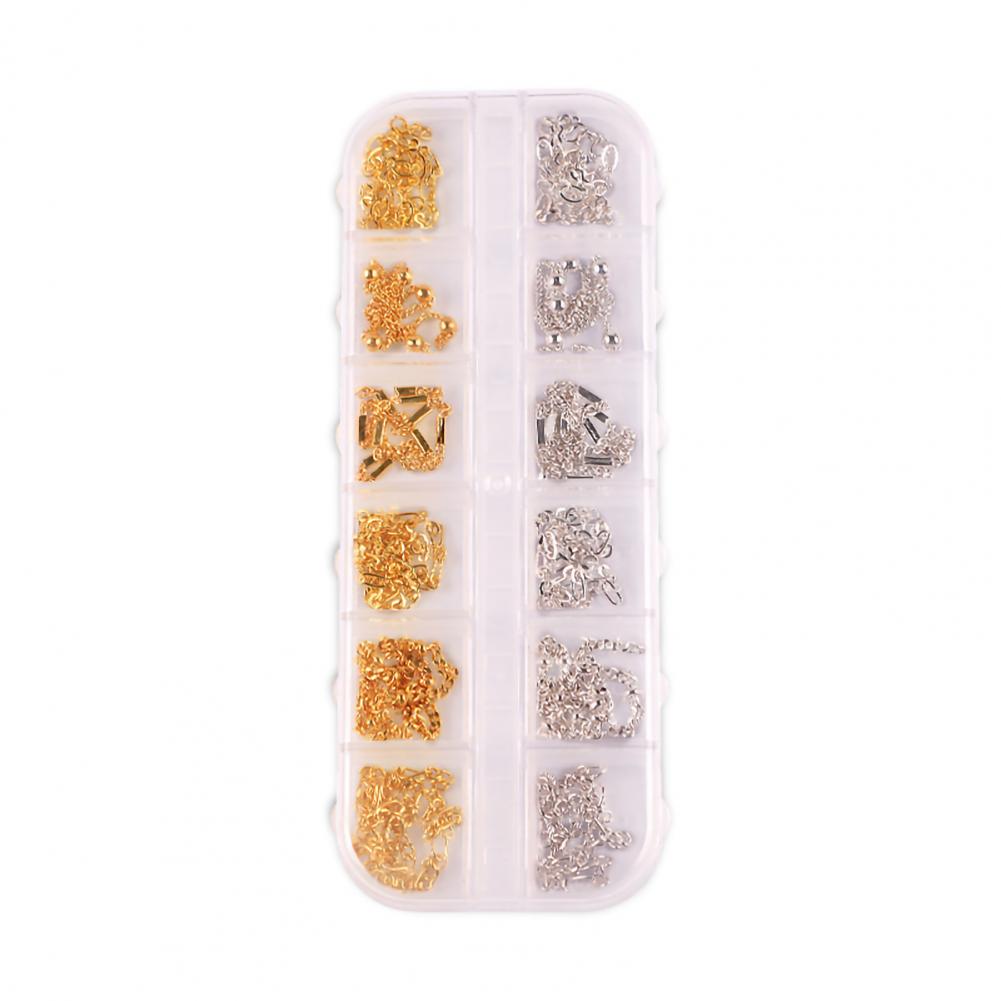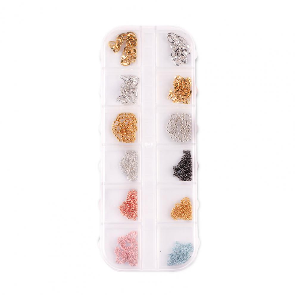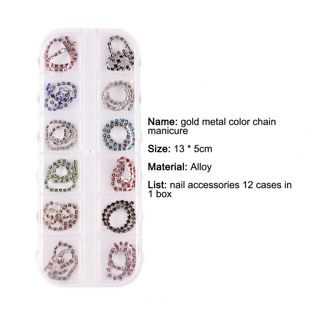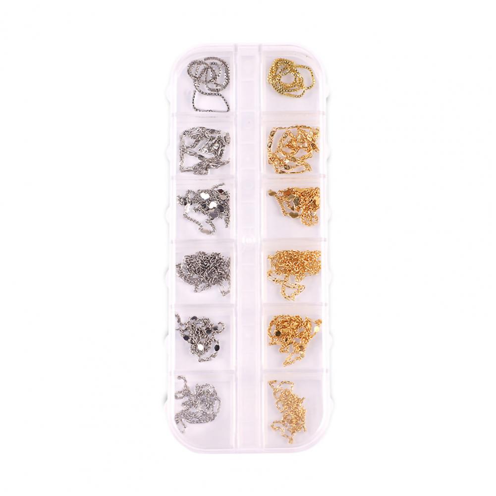 12 сеток/коробка, цепочка для ногтей, тонкая работа, декоративный сплав, ногтевое искусство, цепочка с украшением для личного использования