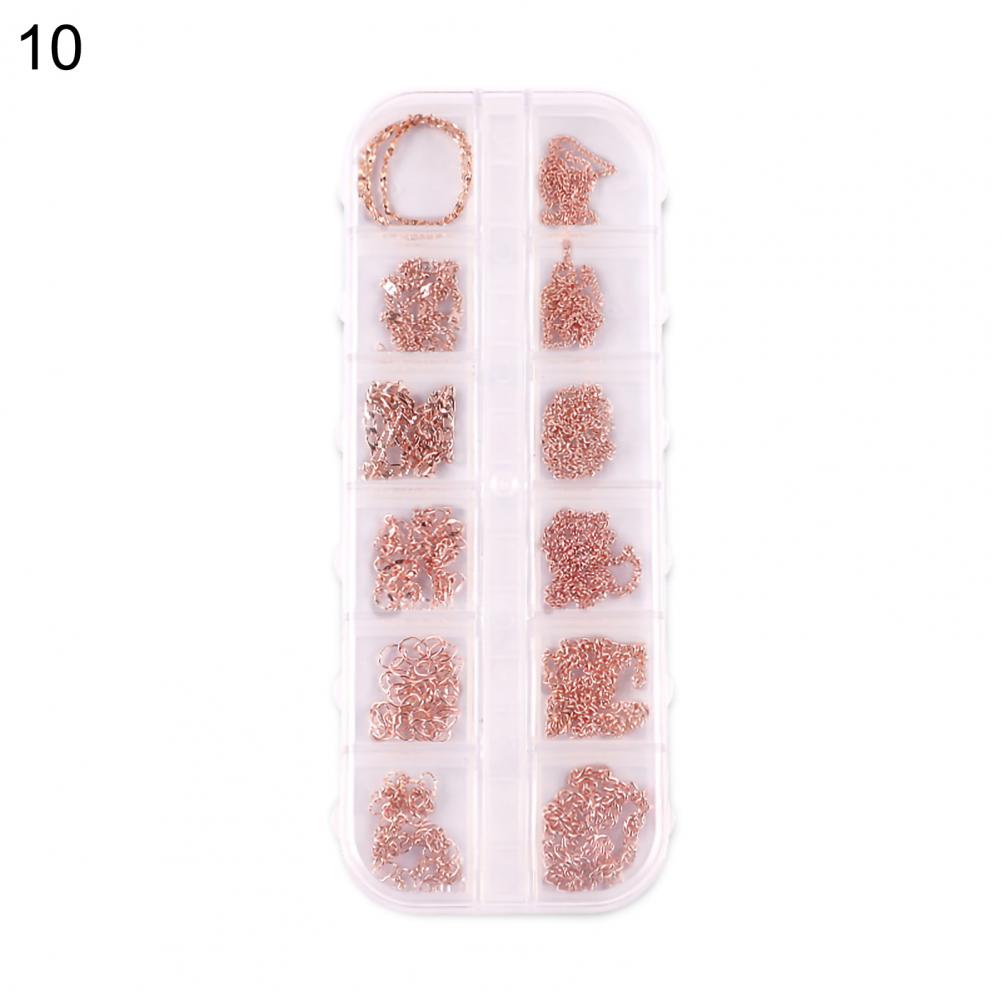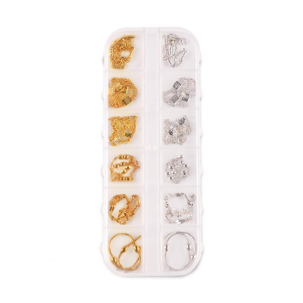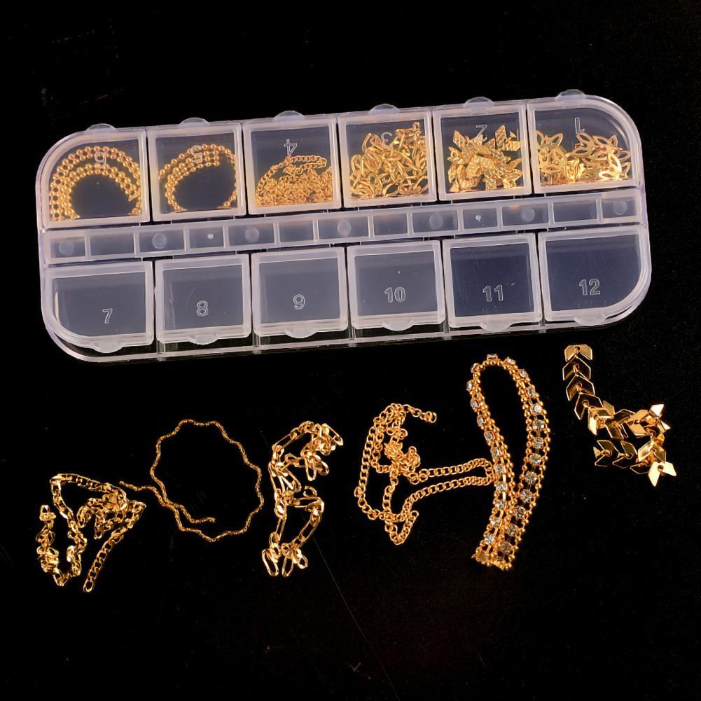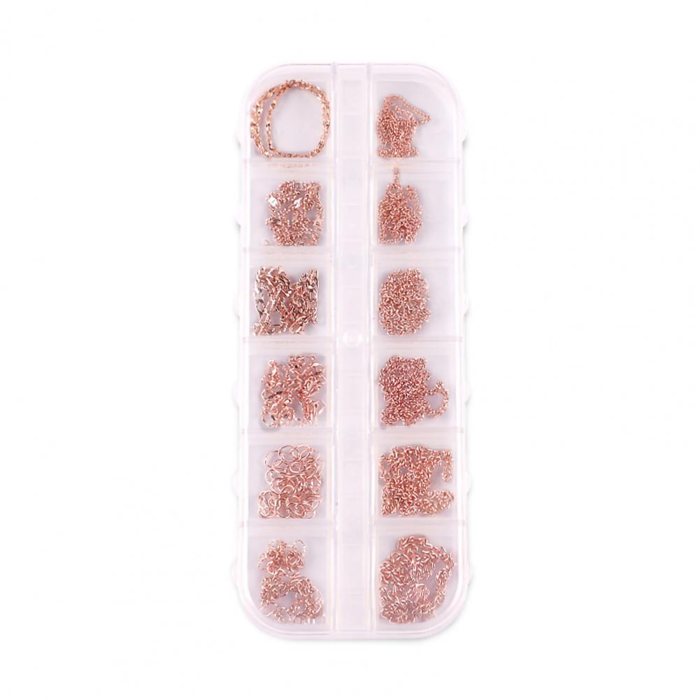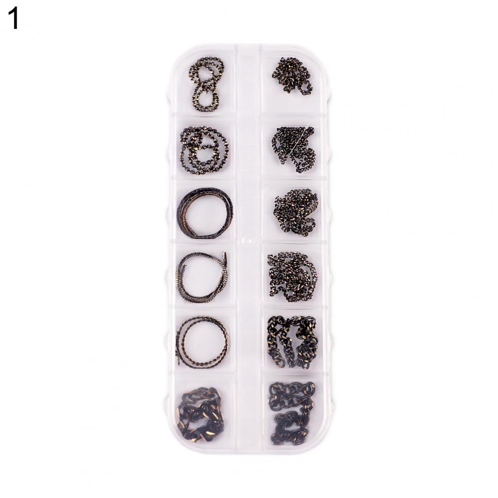 12 сеток/коробка, цепочка для ногтей, тонкая работа, декоративный сплав, ногтевое искусство, цепочка с украшением для личного использования