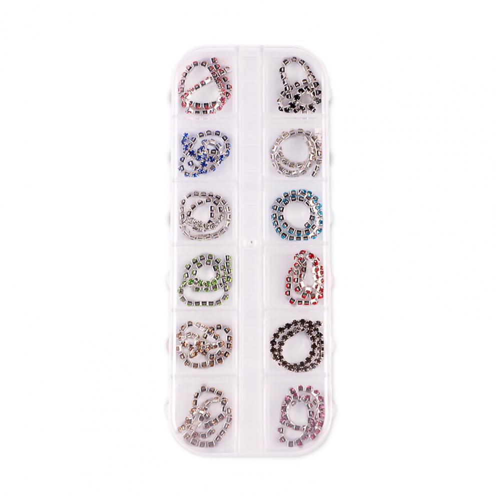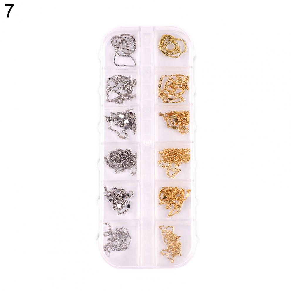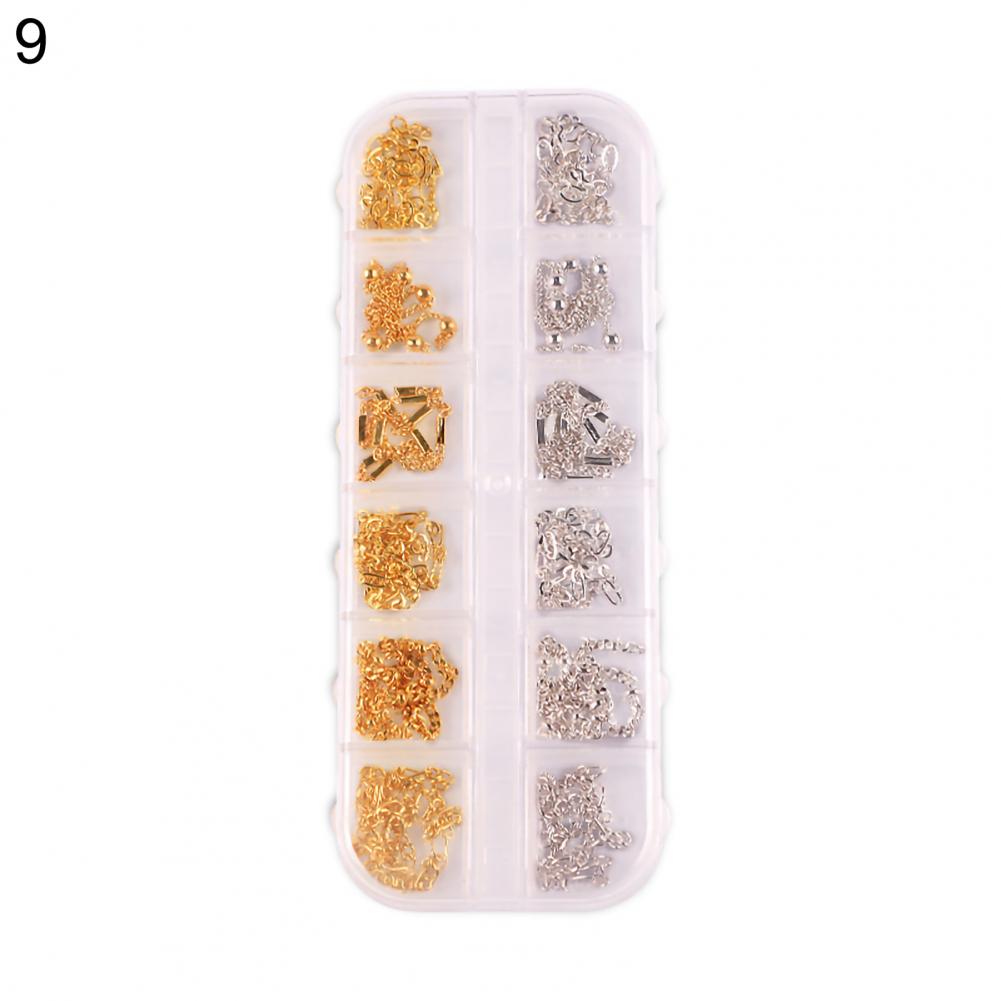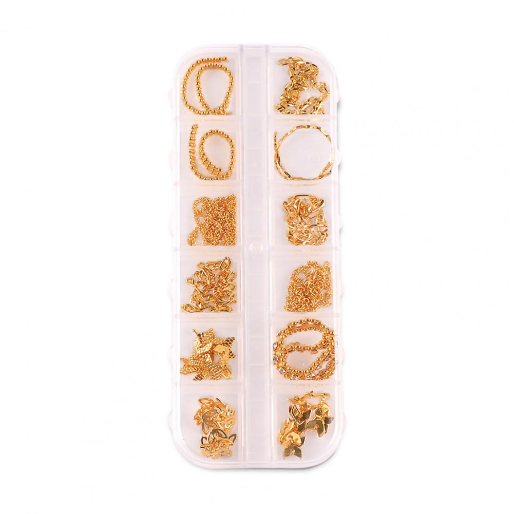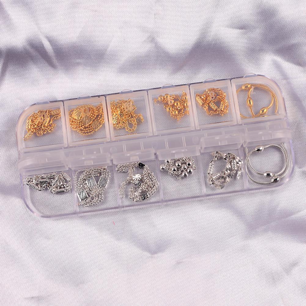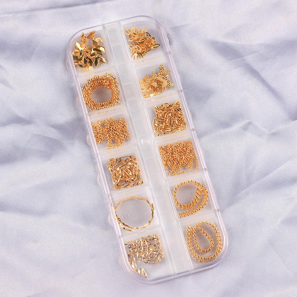 12 сеток/коробка, цепочка для ногтей, тонкая работа, декоративный сплав, ногтевое искусство, цепочка с украшением для личного использования