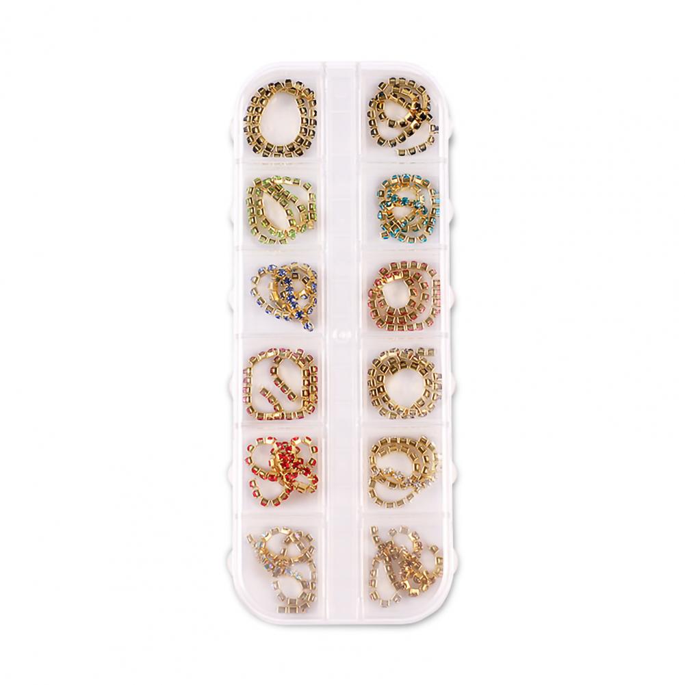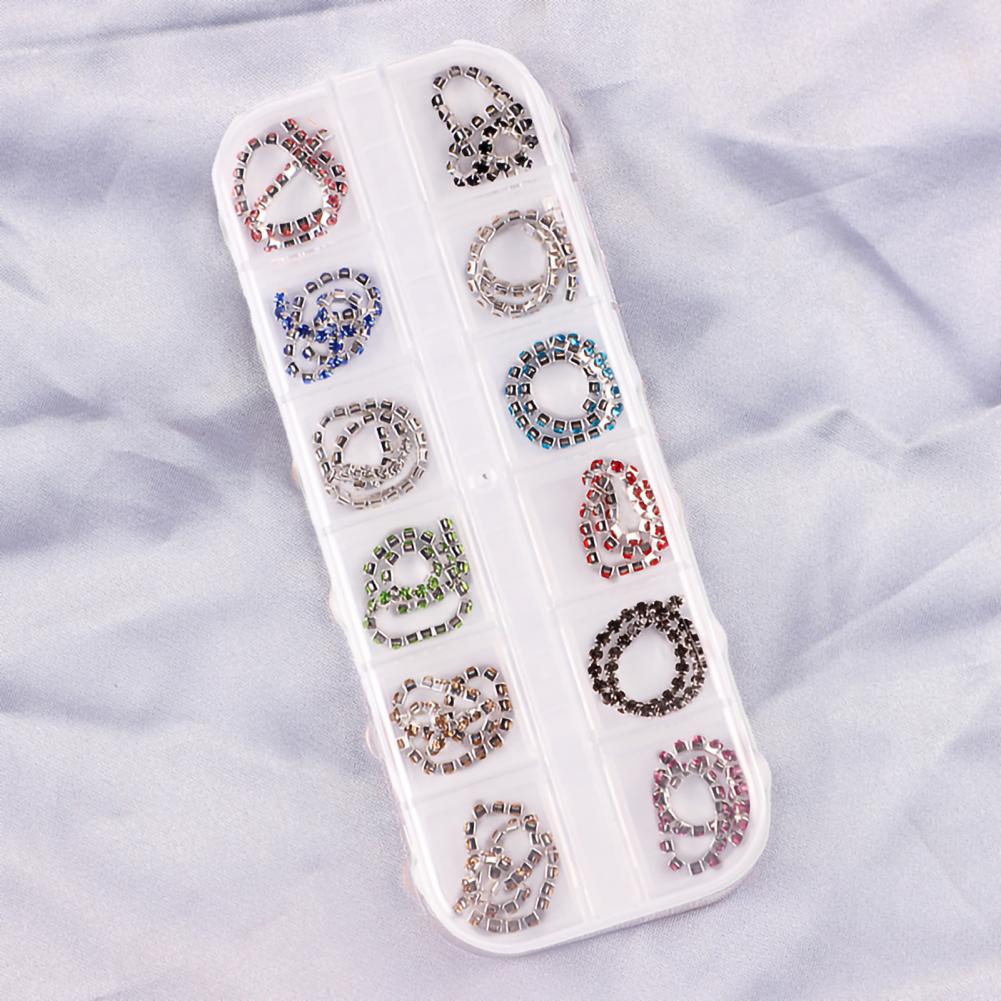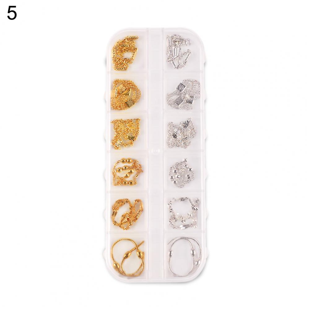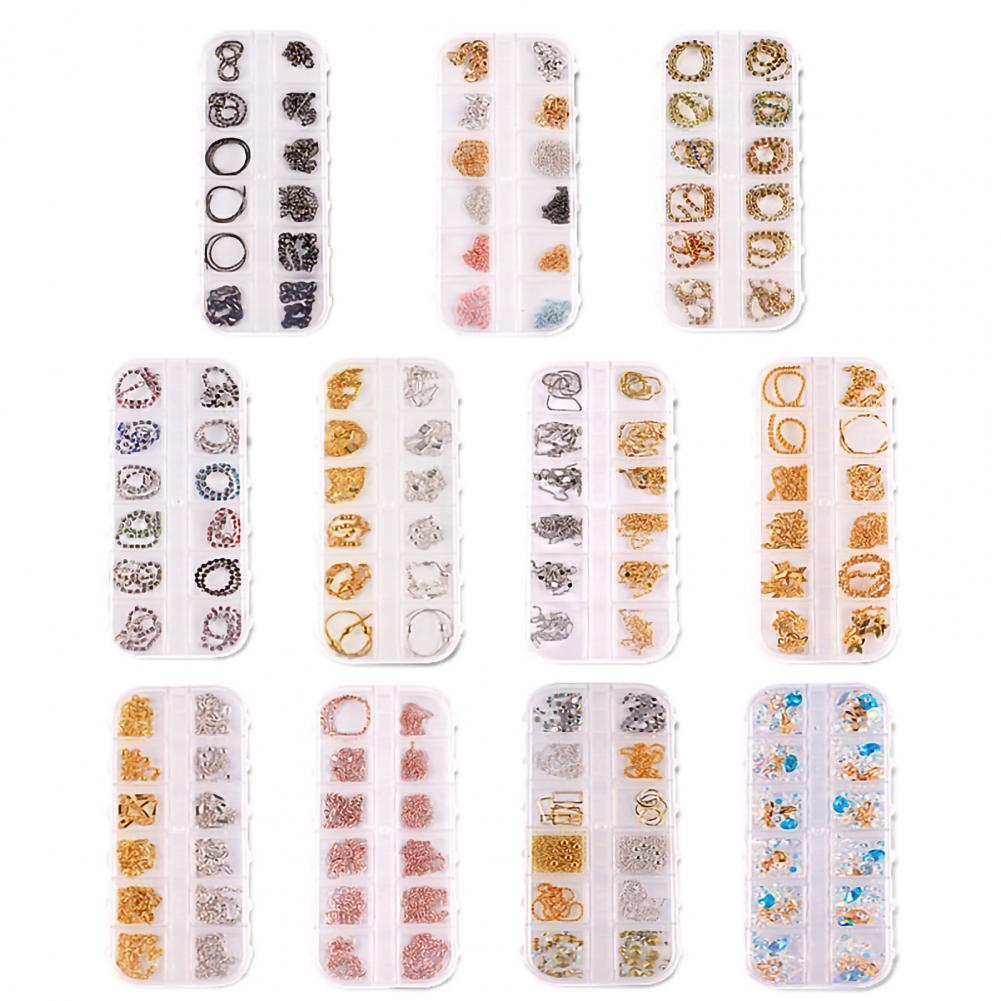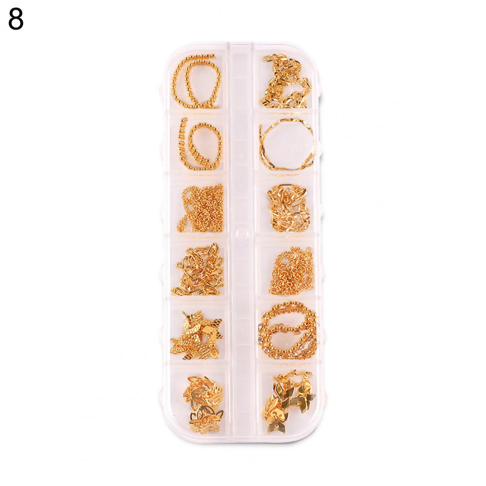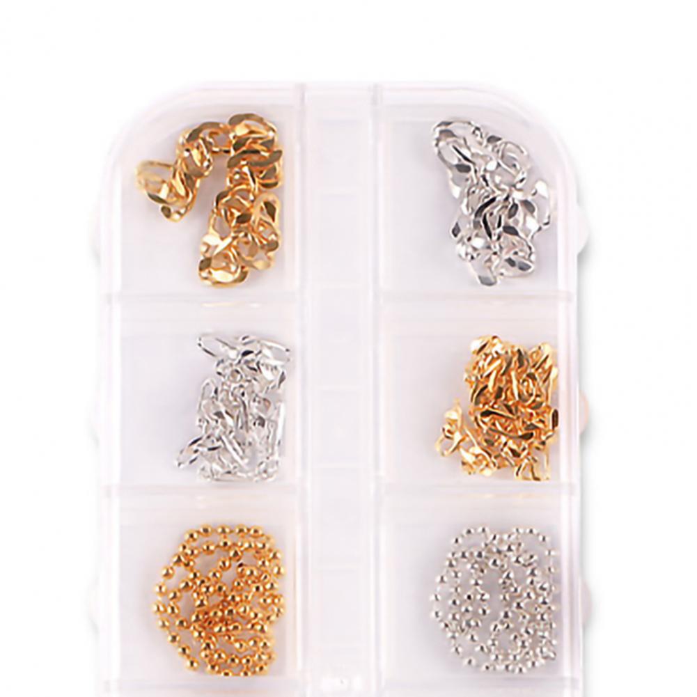 12 сеток/коробка, цепочка для ногтей, тонкая работа, декоративный сплав, ногтевое искусство, цепочка с украшением для личного использования