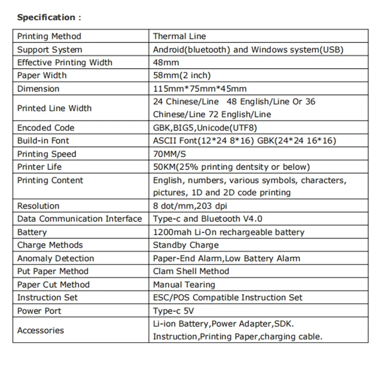 Высокая скорость печати 58 мм Термопринтер Портативный USB билет штрих-код Bluetooth принтер для мобильный телефон