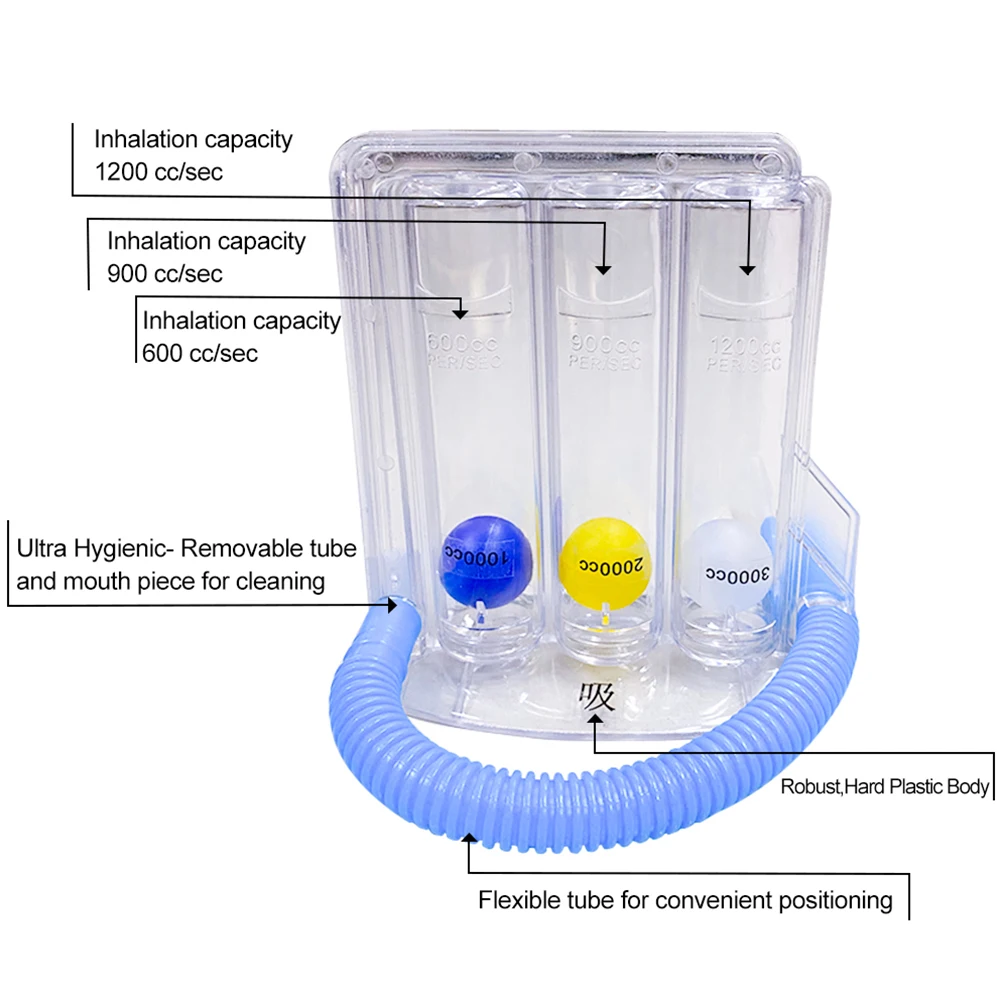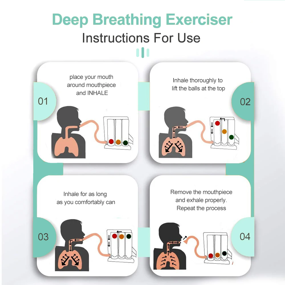 Вставьте дыхательную трубку в воздухозаборник. Убедитесь, что он прочно подключен. Затем подключите мундштук к другому концу дыхательной трубки. Затем положите мундштук в рот. Плотно прижмите губы к мундштуку. Медленно Дышите (глубоко вдыхайте), пока ваши губы все еще плотно закрыты вокруг мундштук. Задержите дыхание в течение 3 секунд, прежде чем удалить мундштук. Затем медленно выдыхайте. Сделайте вдох и начните цикл снова. Ваша цель-постараться надуть мяч как можно выше. Во-первых, вы можете поднять мяч на короткое расстояние. Но, продолжая тренироваться, вы сможете дышать воздухом. Если у вас головокружение или головокружение, сначала прекратите физические упражнения и отдых.