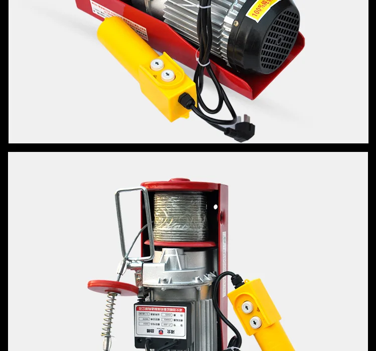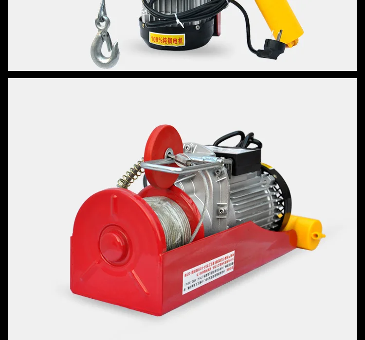 Load tip: the motor is marked as the limit power lifting weight, when lifting heavy objects, to be used in the limit of 70%, if the lifting weight and the marked limit lifting weight is about the same, please choose a large type of motor. The manufacturer's standard lifting height is 12 meters, the corresponding weight of the load, 20 meters and above for the extended wire rope, which has an impact on the load. The relative tension will decrease, 20 meters (70%) and 30 meters (50%).
