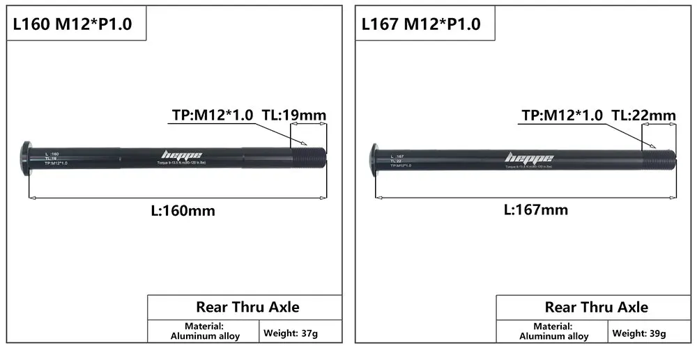 Длина: 160 мм/162 мм/165 мм/166 мм/168 мм M12xP1.5