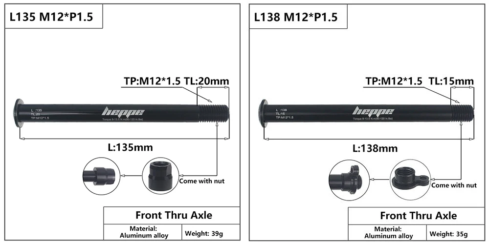 Длина: 118 мм/120 мм/121 мм/122 мм/123 мм/126 мм/128 мм/135 мм/138 мм/140 мм M12xP1.5