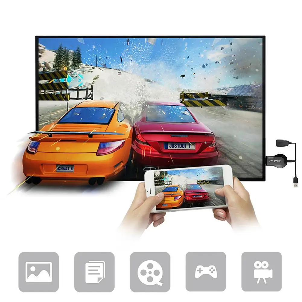 1. Wireless Display: This wireless display receiver can wirelessly mirror or stream your mobile devices to your TV/projector/monitor. Easily share videos, photos, and movies to the big screen. Make your TV a smart TV. (Not for projector)Due to manual measurement, there might be a tolerance in the product size.
