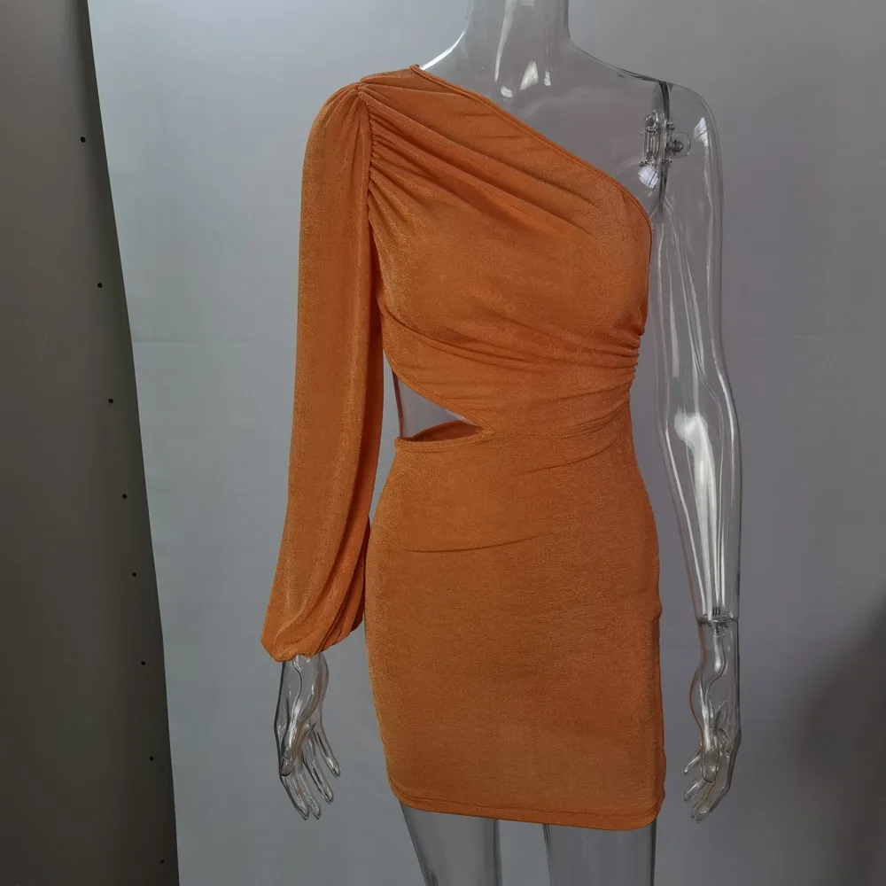Женское сексуальное облегающее платье на одно плечо, мини-платье с длинным рукавом и рюшами, Клубные вечерние платья в уличном стиле