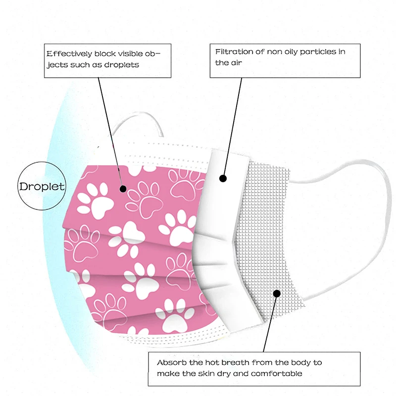 1. Маска изготовлена из трехслойного фильтрующего материала, который может эффективно фильтровать вредные вещества в воздухе и обеспечить множество защиты