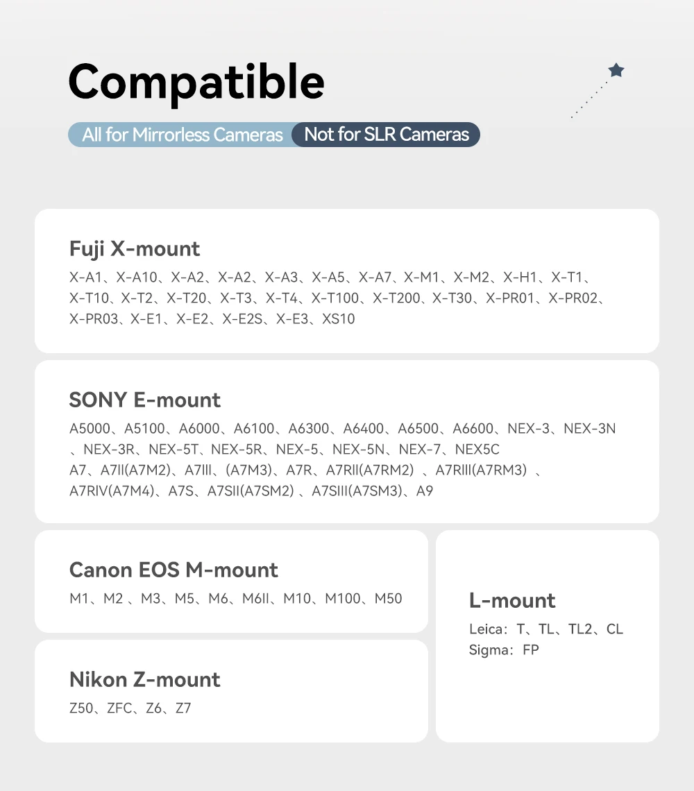 Для SONY E FUJI X Canon M EOS R Nikon Z LeicaСигмаL M4/3
