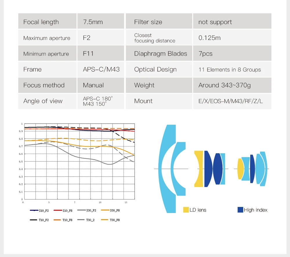 APS-C объектив рыбий глаз MF с большой диафрагмой