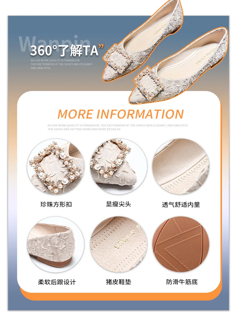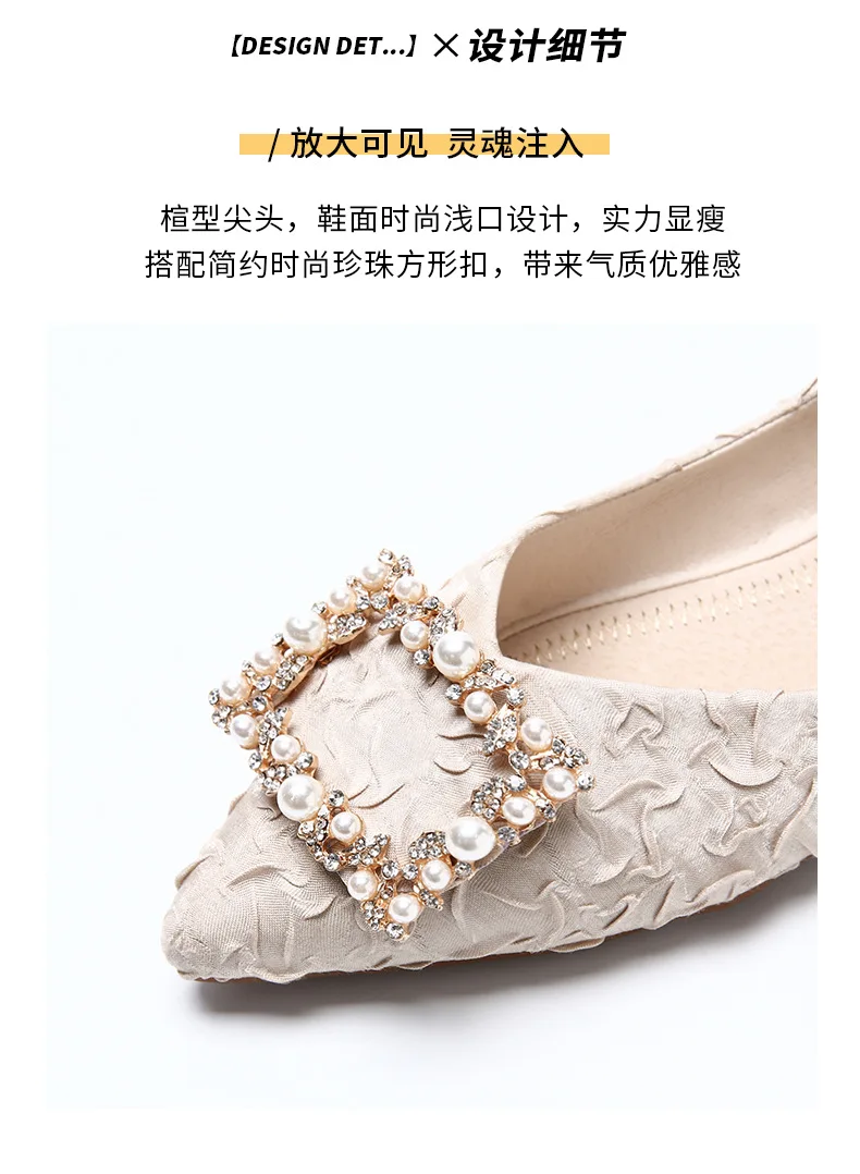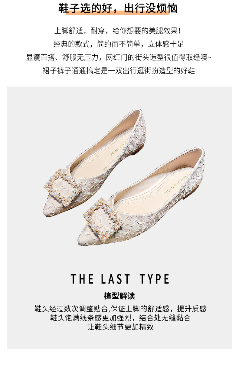 Брендовые бусы; Туфли на плоской подошве с пряжкой; Женские шелковые Мокасины с острым носком