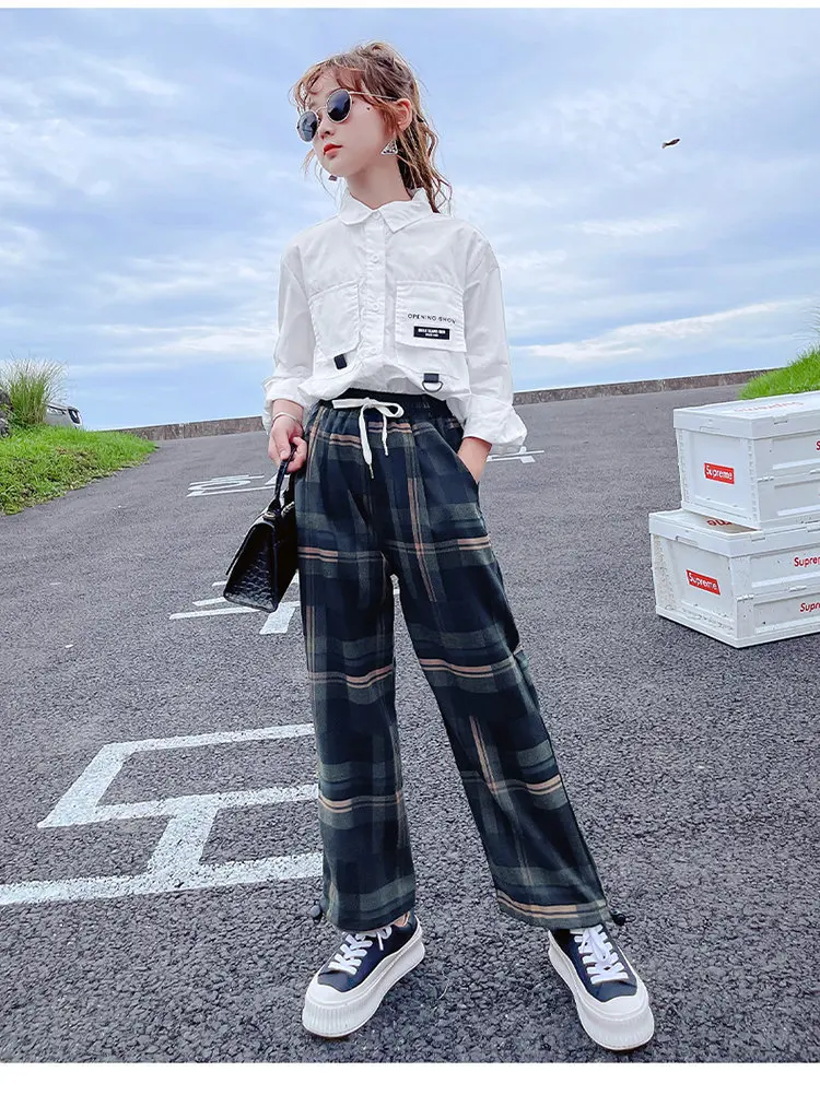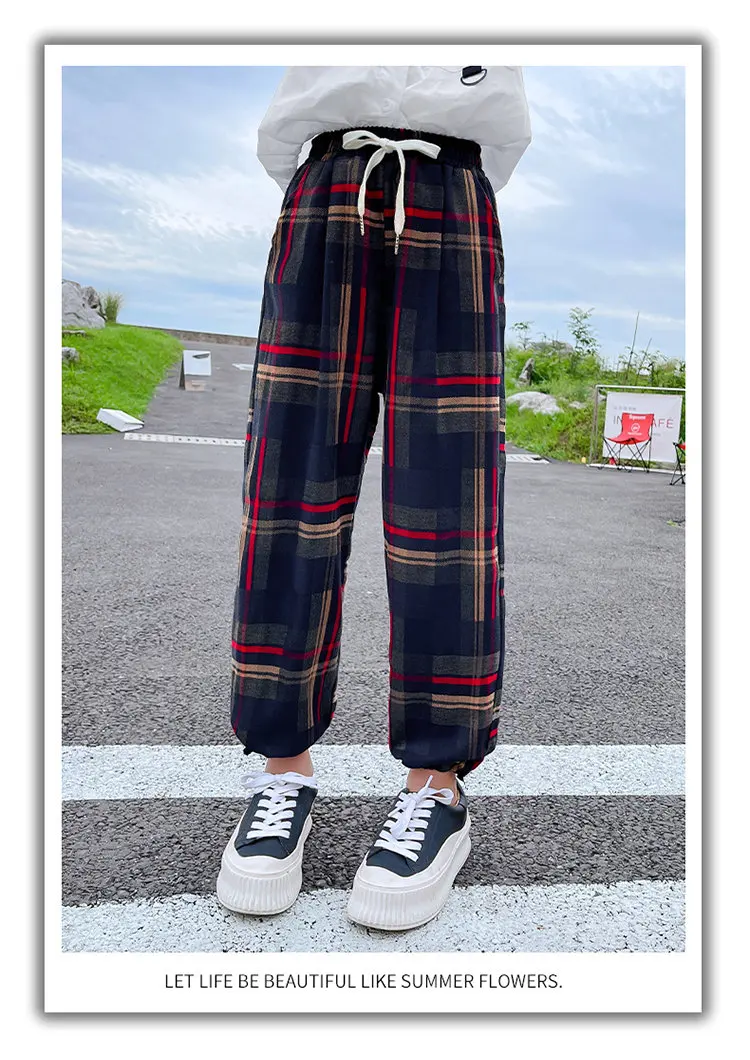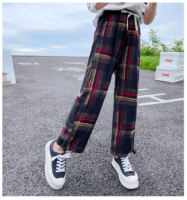 Новинка; Детские штаны для мальчиков и девочек; Клетчатые брюки для подростков; Повседневная спортивная одежда в Корейском стиле; Лидер продаж; Детские брюки; Сезон весна-осень