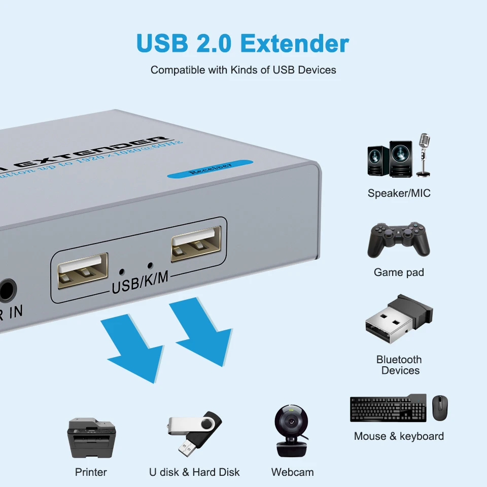 Этот Удлинитель HDMI позволяет расширить источник hdmi на Дисплей hdmi до 100 м, просто используя один сетевой кабель cat6/cat6a/cat5 вместо кабеля HDMI. Дорогой HDMI удлинитель экономит ваши деньги и пространство. Благодаря встроенному чипу последнего поколения, Эти удлинители HDMI полностью поддерживают 1080P/60 Гц даже на расстоянии 100 м 328ft.С функцией usb kvm. Поддержка клавиатуры/мыши/USB2.0 расширения Характеристики:Стандарты --------- HDMI 1,3; HDCP 1,2Разрешение ------ 1920X1080 @ 60 ГцРазъем ----- HDMI-APOE ------- не поддерживаетРасстояние передачи -------- 100 м328ftUSB