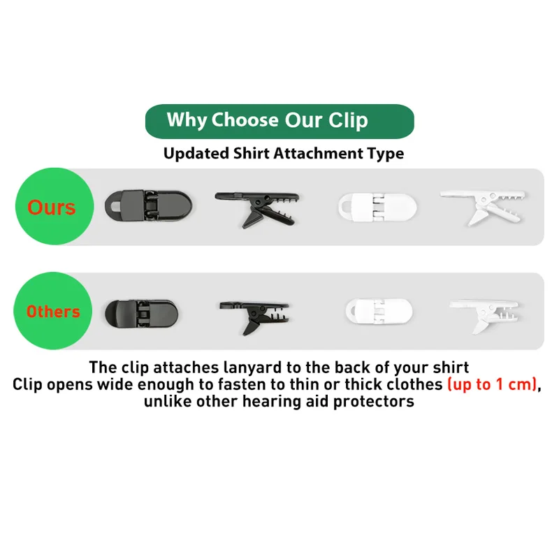 Ремешок для слухового аппарата и зажим-легкий и модный аксессуар для защиты слухового аппарата. Держит слуховые аппараты прикреплены к шнурку и вашей рубашке, чтобы предотвратить их падение или потерю.