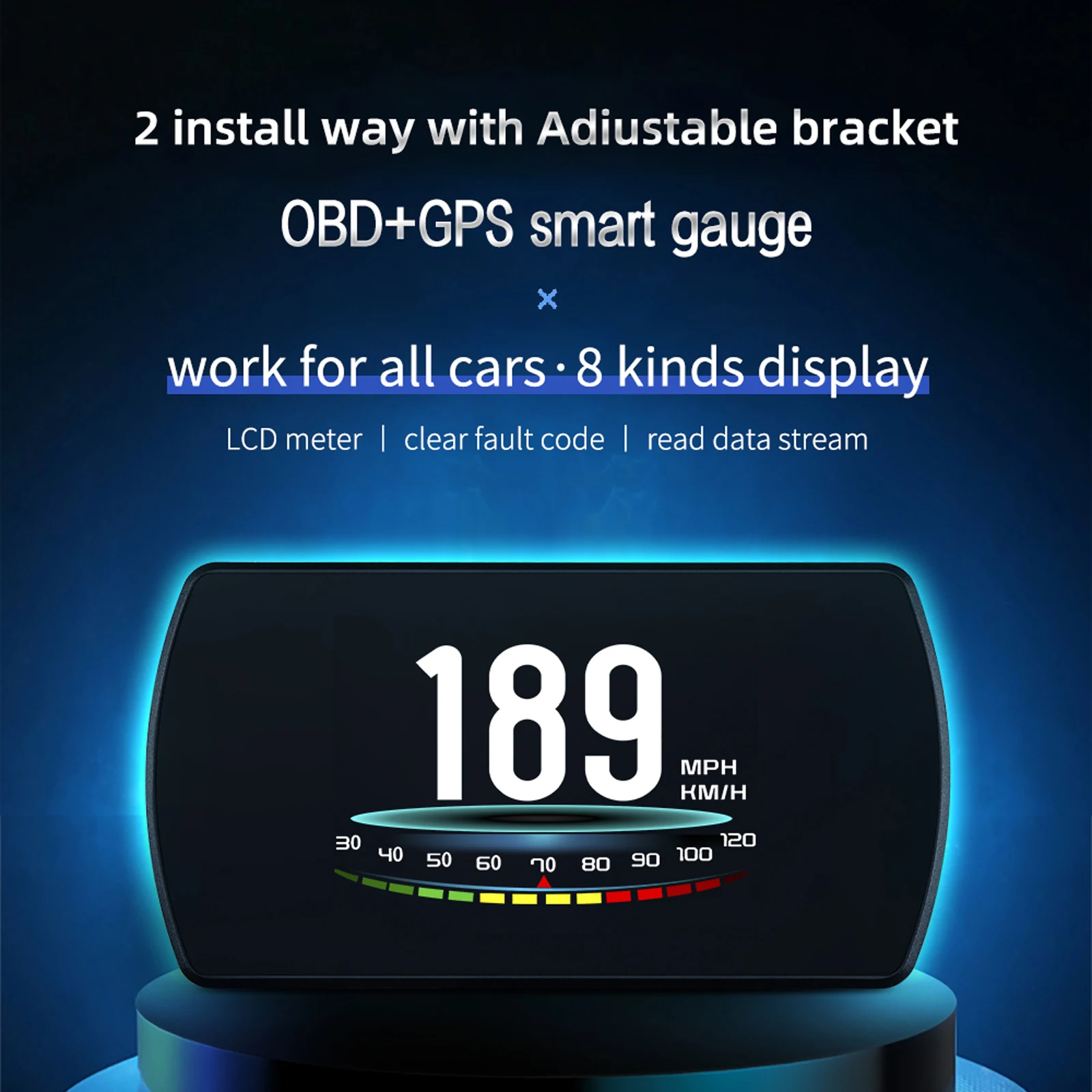 Главный дисплей работает для большинства автомобилей с OBD2 или EUOBD, произведенных после 2003 года. Проверьте этикетку вашего автомобиля, если есть сертификат OBD2, вы можете использовать дисплей head-up. Режим GPS также поддерживается одновременно.