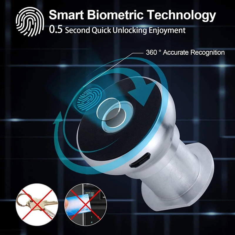 [Передовые технологии и быстрая разблокировка]: Скажите «нет» ключам и RFID-замкам. Отпечатков пальцев замок принимает Профессиональный биометрический технологии, которая позволяет быстро и точно 360 градусов всенаправленность и признание, создавая 0,5 во-вторых быстрая разблокировка удовольствия. Для быстрого разблокировки требуются только отпечатки пальцев.