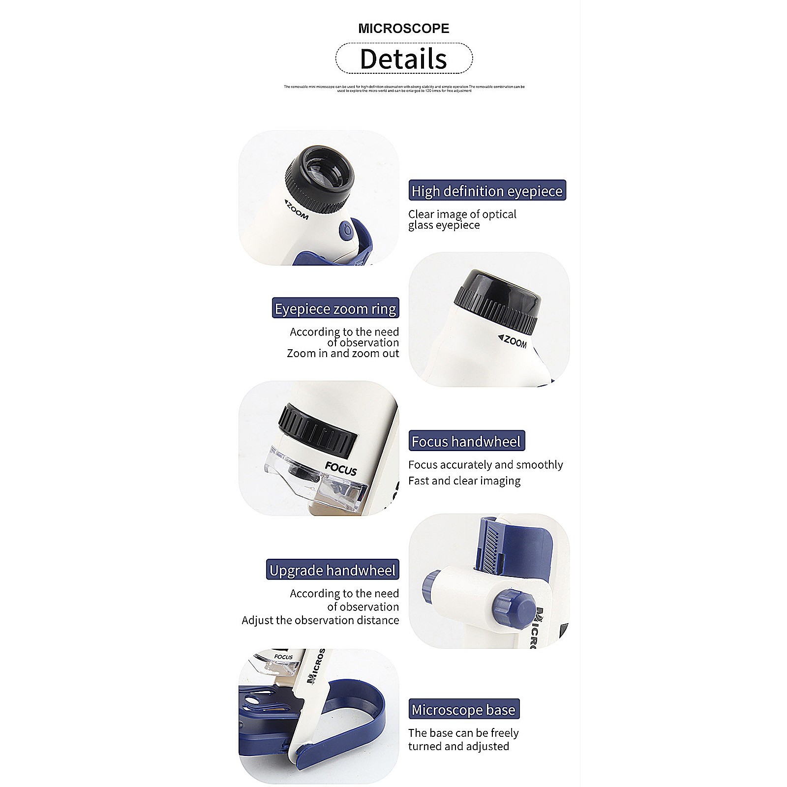 Специальное предложение Дизайн: оснащен окуляром высокой четкости, портативный размер подходит для Ручная работа, простой в эксплуатации со встроенным светодиодный светильник, тем временем прилагается Образцы слайдов, которые делают игрушку яркой и реалистичной для привлечения детей Интересы, Поощряйте к самостоятельному исследованию.