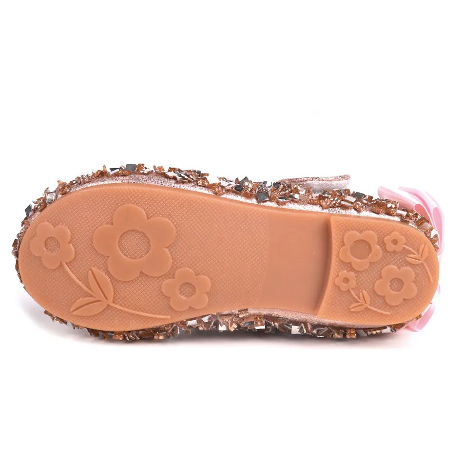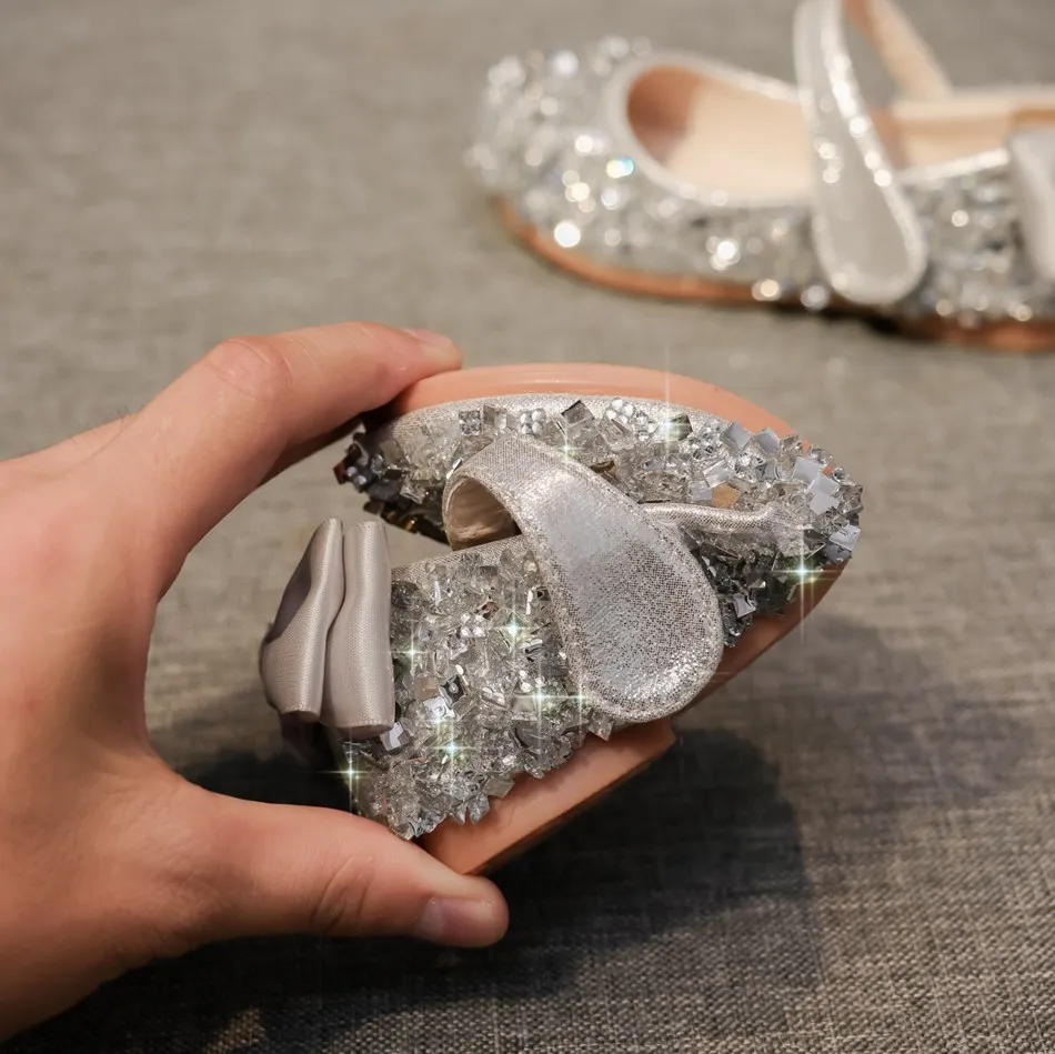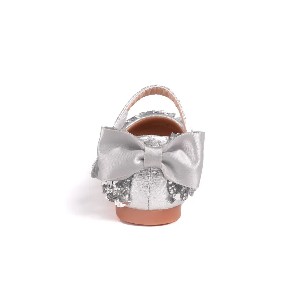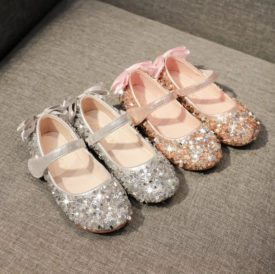 Название платья: Стразы для девочек; Обувь принцессы без застежки; Детские балетки на плоской подошве с бантом сзади; Блестящие свадебные туфли Mary Jane