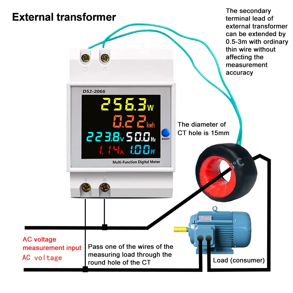 Многофункциональный цифровой измеритель на DIN-рейке D52-2066 может измерять напряжение переменного тока, переменный ток, активную мощность, коэффициент мощности, частоту и электрическую энергию и одновременно. Измеритель имеет красочный полноэкранный ЖК-дисплей высокой четкости для отображения параметров измерения.