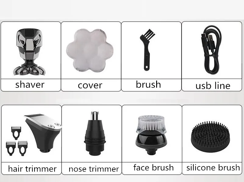 Мужской перезаряжаемый электробритва с Лысой головкой, 7 плавающих головок, борода, нос, ухо, триммер для волос, бритва, машинка для стрижки, щетка для лица, набор для ухода
