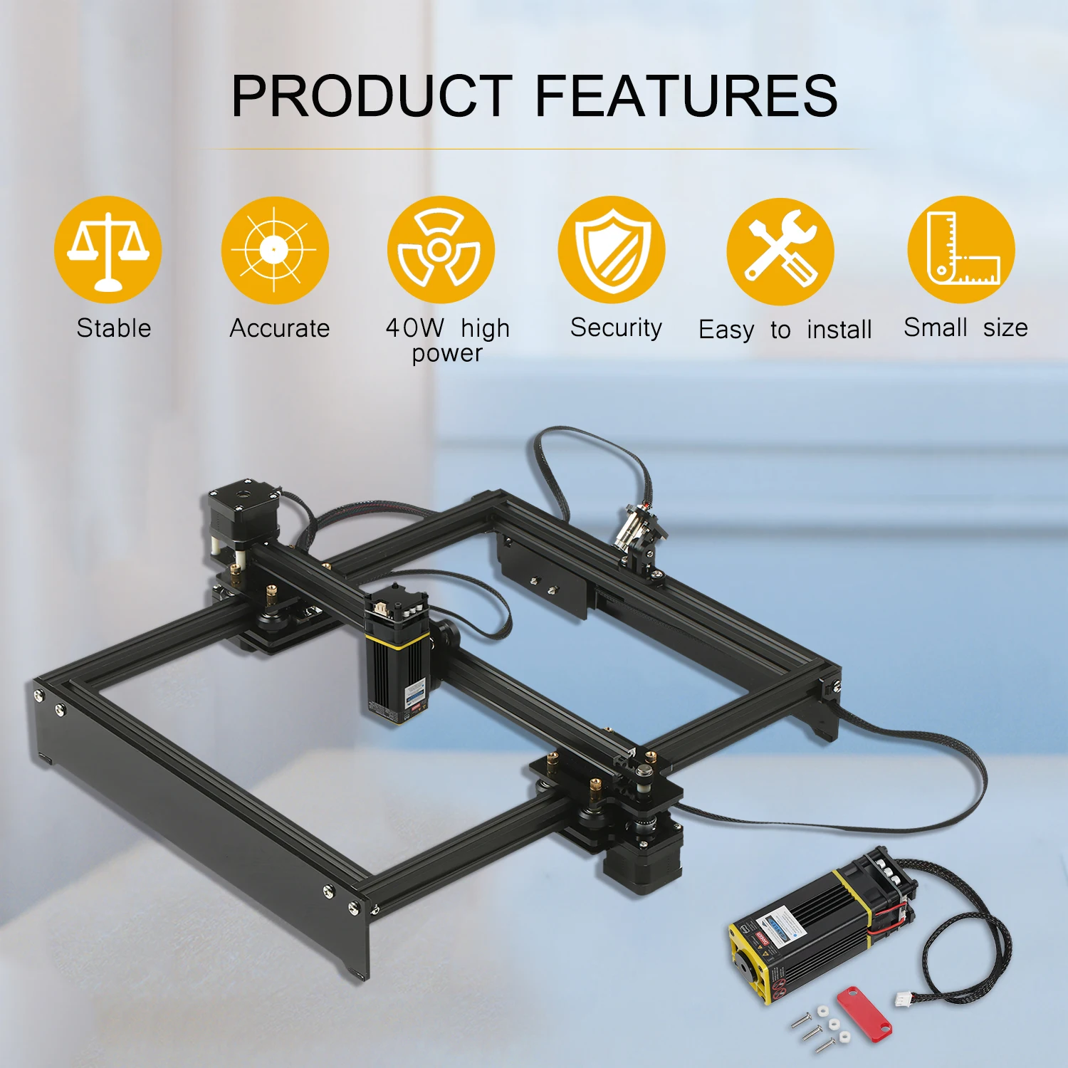 Эффективность и стабильность--- Красный светильник помогает найти область гравировки, предотвращает резку по колам, премиум-двигатель + ремень замкнутый контур, улучшая стабильность работы и делает машину более гибкой и низким уровнем шума.