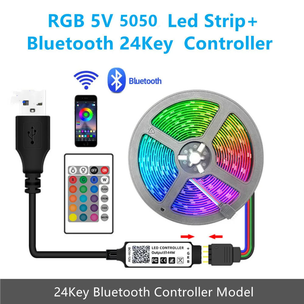 Вариант 4 : 1 шт. RGB 1 м/2 м/3 м/4 м/5 м 5 в 5050 Светодиодная лента + 1 шт. 24Key Bluetooth контроллер (1 шт. аккумулятор cr2025 в комплект не входит)