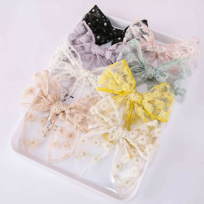 Ins/заколки для волос с ромашками; Заколки для маленьких девочек; Кружевные заколки принцессы с бантом для детей; Заколки с принтом; Kawaii; Аксессуары для младенцев; Новинка 2021 года