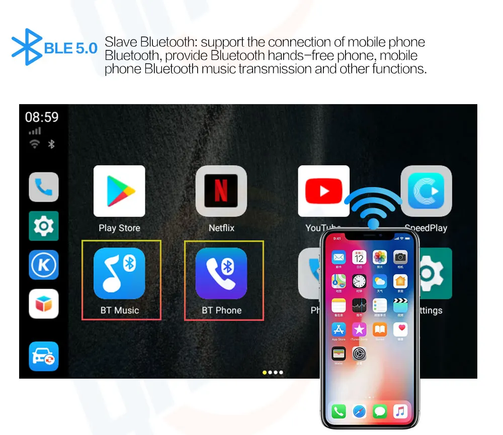 1. Master-slave dual Bluetooth: Master Bluetooth, complete mobile phone side Bluetooth protocol stack, support to connect to various Bluetooth devices, such as Bluetooth OBD, Bluetooth HID input devices (Bluetooth mouse, Bluetooth keyboard, etc.); from Bluetooth device, support to connect to mobile phone Bluetooth , Provide Bluetooth hands-free phone, mobile phone Bluetooth music transmission and other functions.