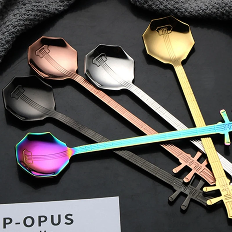 Кофейные ложки, 5 шт. музыкальные кофейные ложки из нержавеющей стали, чайные ложки, ложки для смешивания сахара, ложка с титановым покрытием