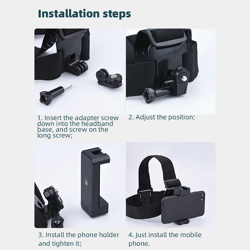 Головной держатель на мобильный телефон, кронштейн для видеосъемки с зажимом для телефона (7 ~ 10 см) для смартфонов iPhone Samsung и GoPro Insta360 Sony DJI крепление на голову для экшн-камеры