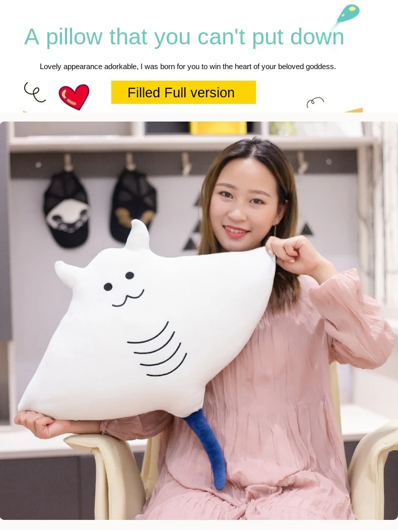 Home Decoration New Fish Pillow Simulation Marine Creature Sea Fish Doll Plush Toy Cushion Large Bat Fish Toy Girls Like Filling