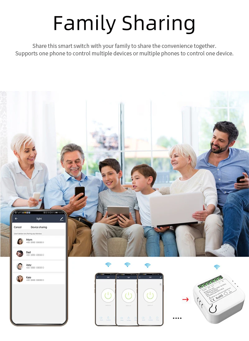 Управление Wi-Fi через мобильные сети phone2.4G обеспечивает необходимое подключение к модулю DIY Switch без необходимости отдельного концентратора.
