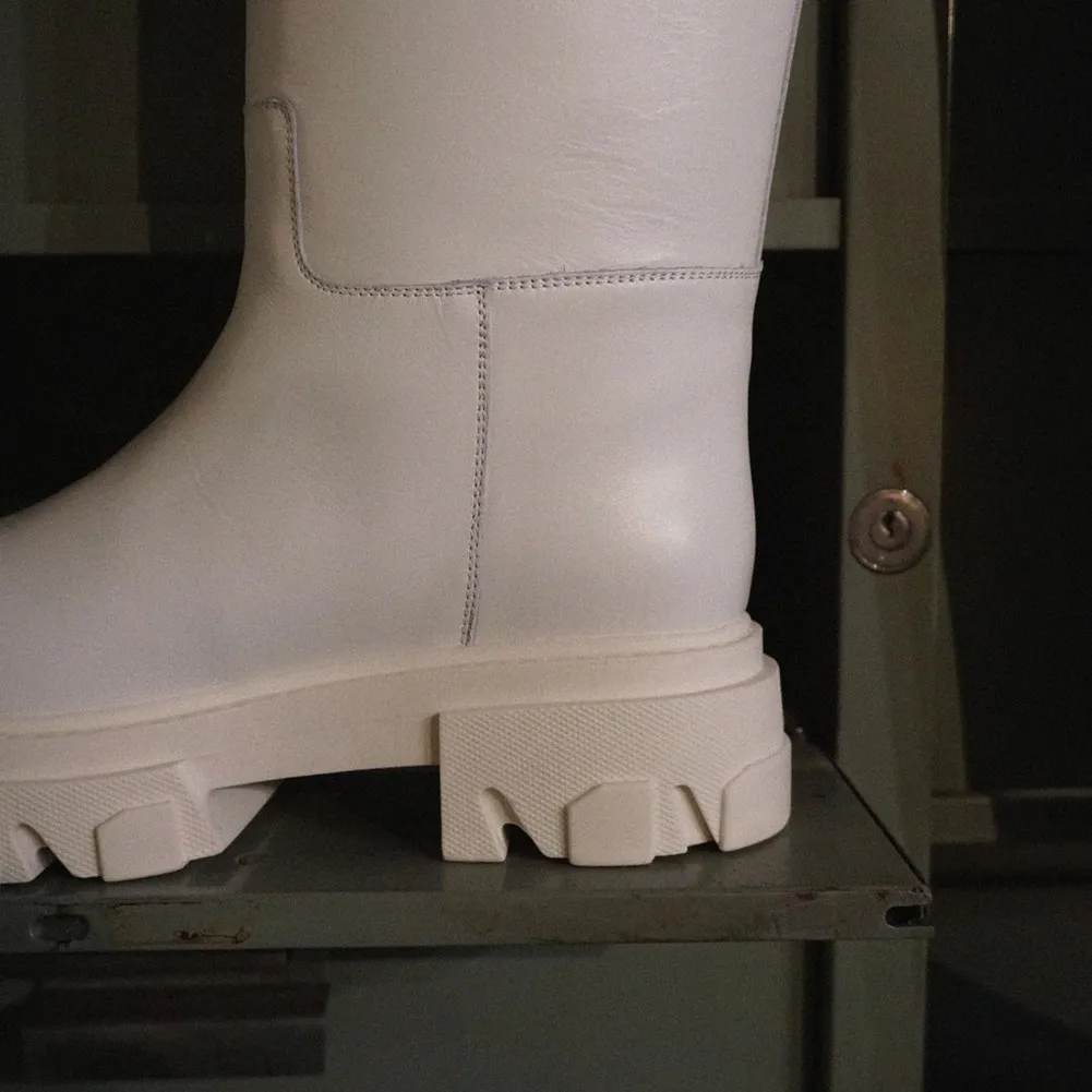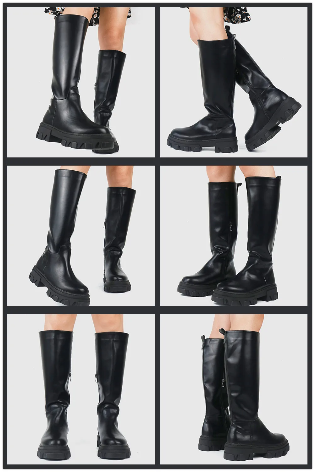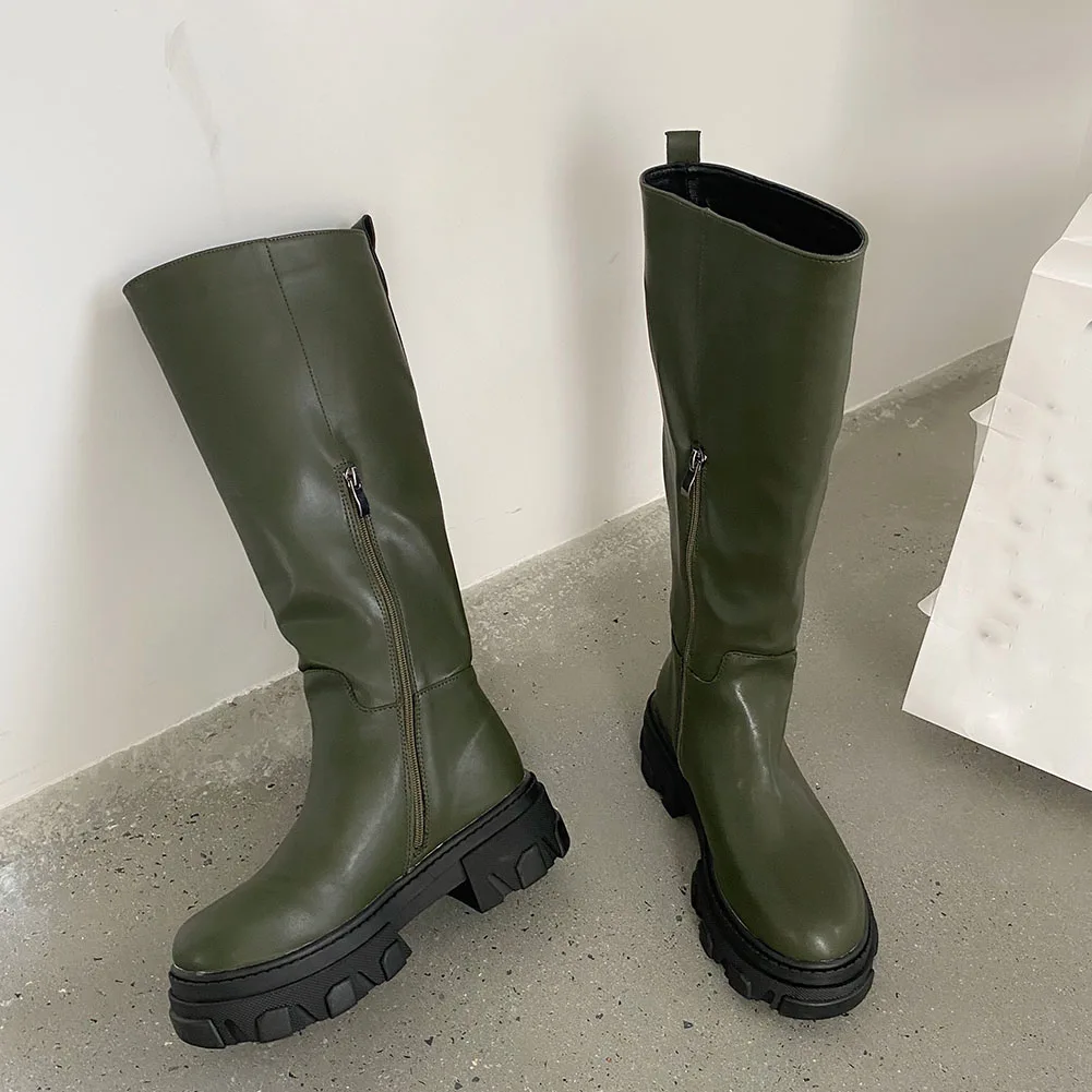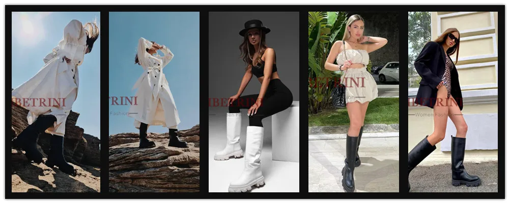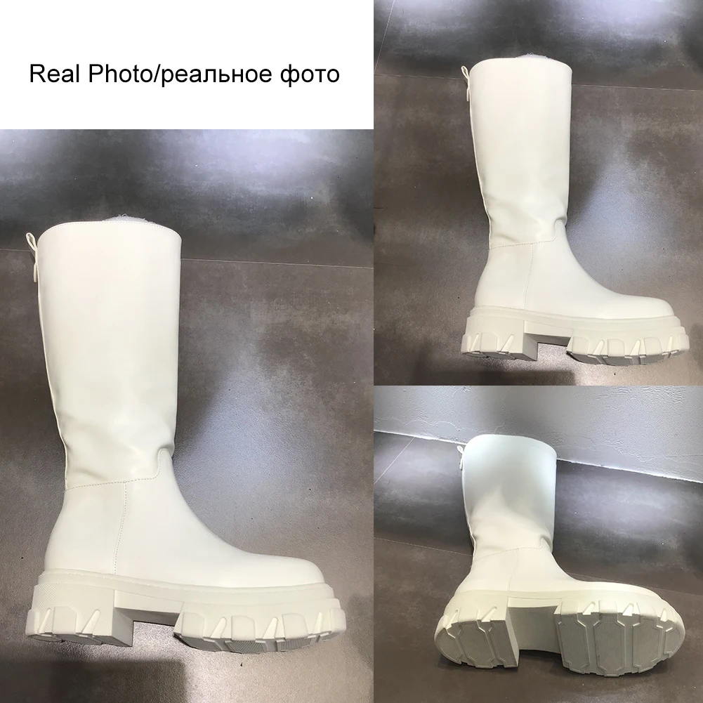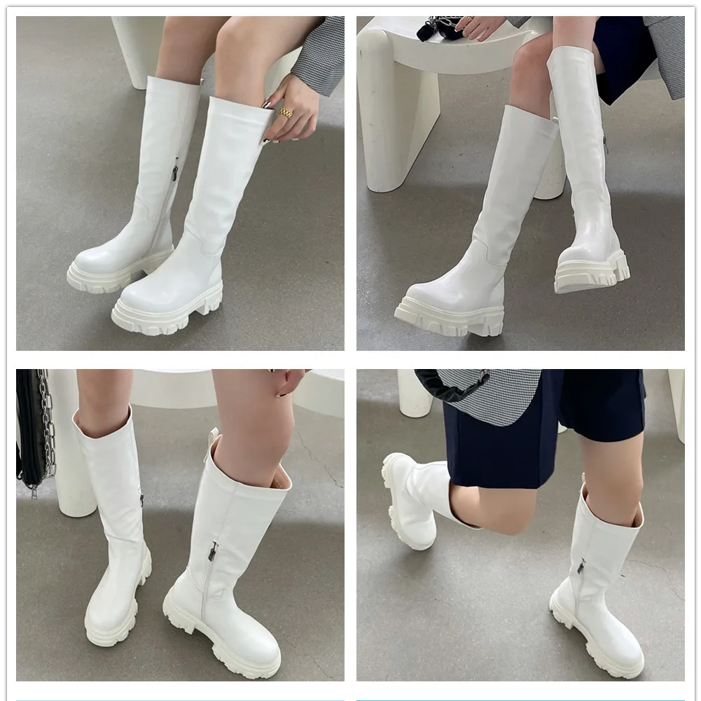 Новое поступление, женские сапоги до колена до середины икры, модная женская обувь черного и белого цвета на массивном каблуке, роскошный фирменный дизайн