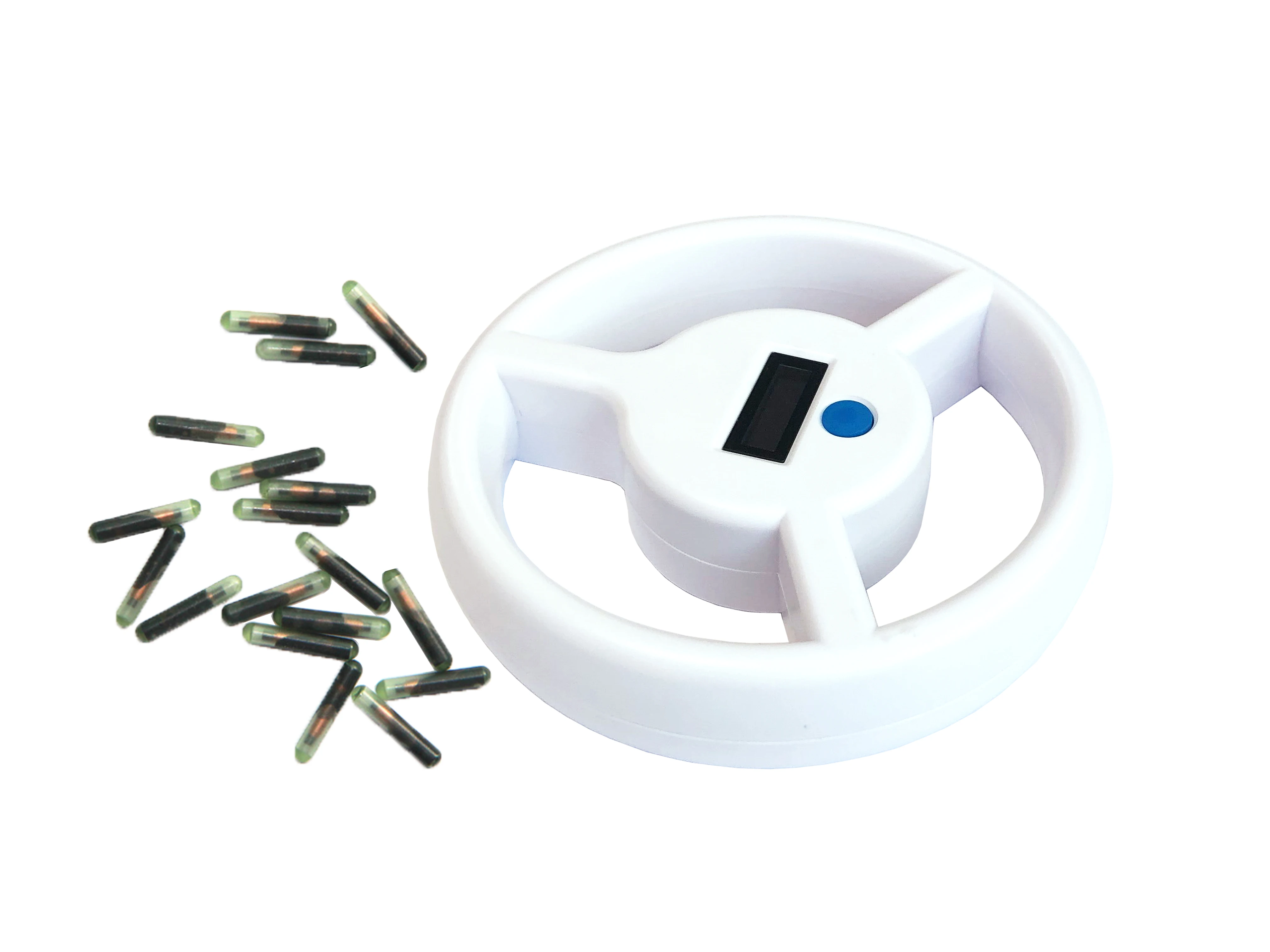 The ear tag reading distance is 22-25cm, and the glass tube reading distance is 10-15cm (depending on the chip size)