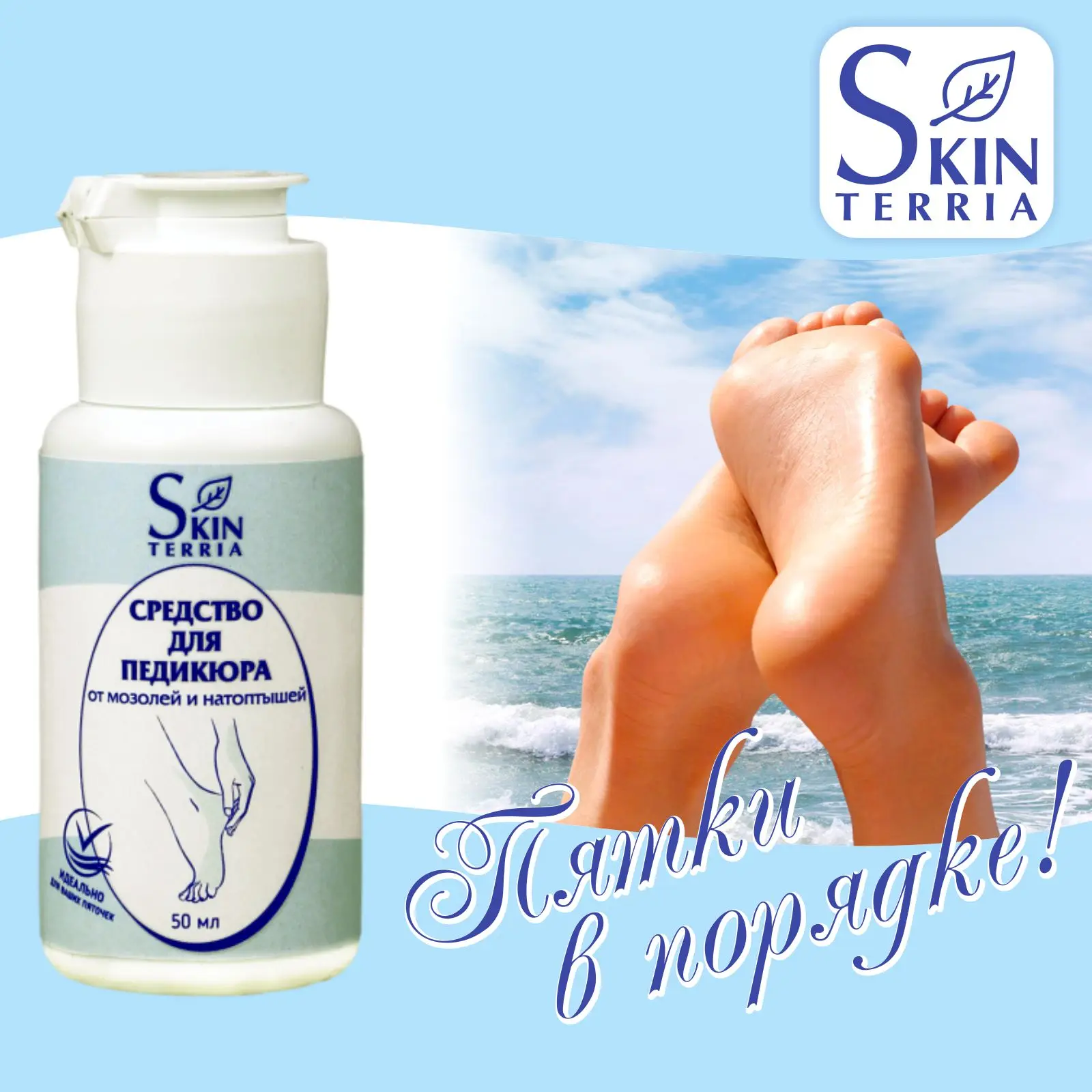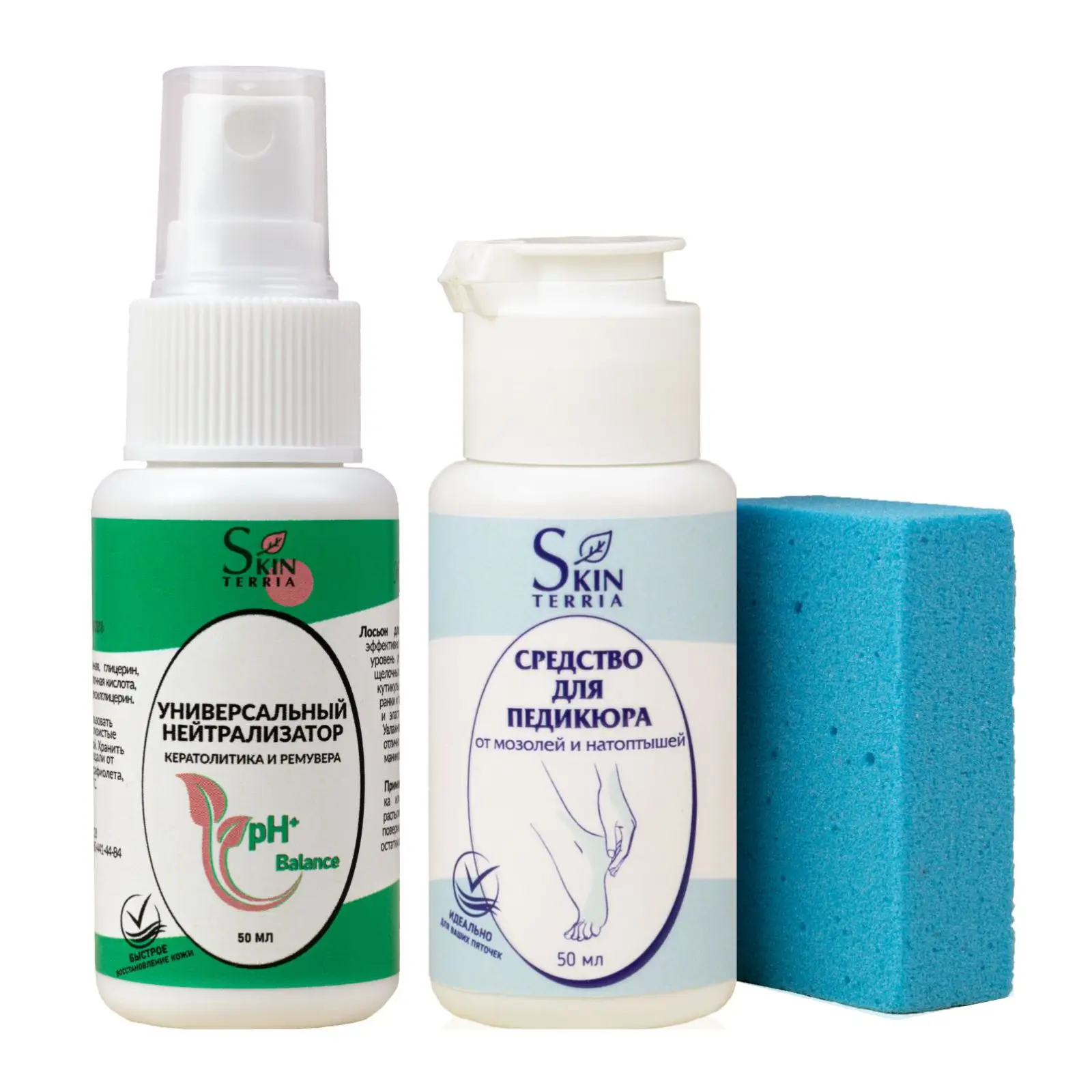 SKINTERRIA Набор средств для педикюра / Удаление трещин, мозолей, натоптышей и огрубевшей кожи на пятках / Кератолитик и Нейтрализатор, 50 мл + Пемза для ног в подарок