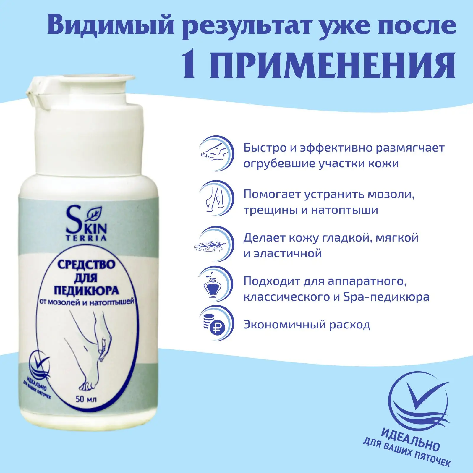 Набор средств для педикюра от SKINTERRIA быстро и эффективно устранит даже самые застарелые эстетические проблемы: трещины, натоптыши и сухие мозоли. Результат виден уже после первого применения! Кожа становится гладкой, мягкой и эластичной. А специально разработанная формула с экстрактом алоэ способствует скорейшему заживлению трещинок. Подходит для аппаратного, классического и Spa педикюра.