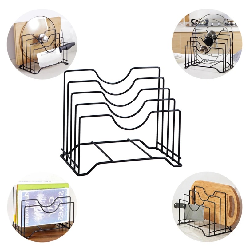 Многоцелевой: органайзер для кухонных принадлежностей используется для управления различными видами кухонной утвари, такими как кастрюля, сковорода, крышка, разделочная доска, противовзрывная Сковорода и т. д., также используется в качестве книжных полок.