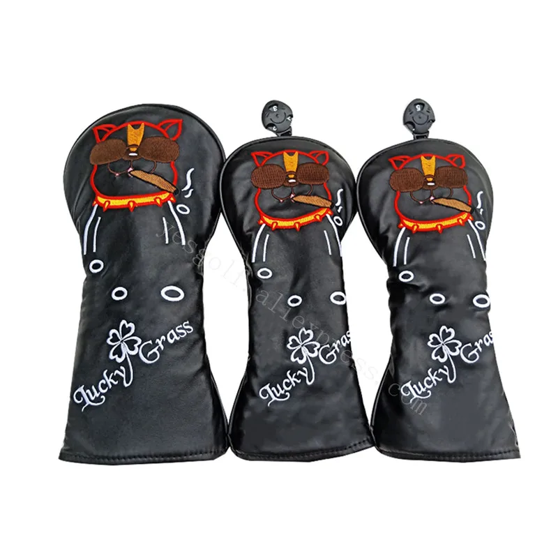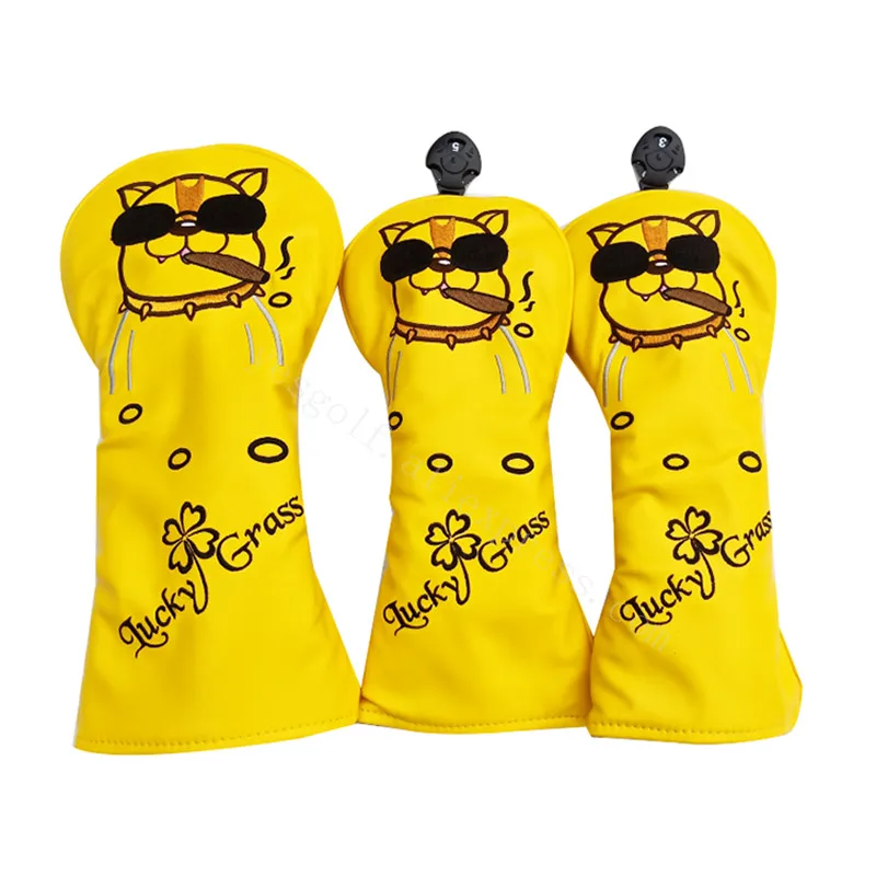 Lucky Grass, милые головные уборы для клюшек для гольфа, для водителей, для фарватера, деревянные покрытия, PU, полный комплект, чехлы для головы, бесплатная доставка