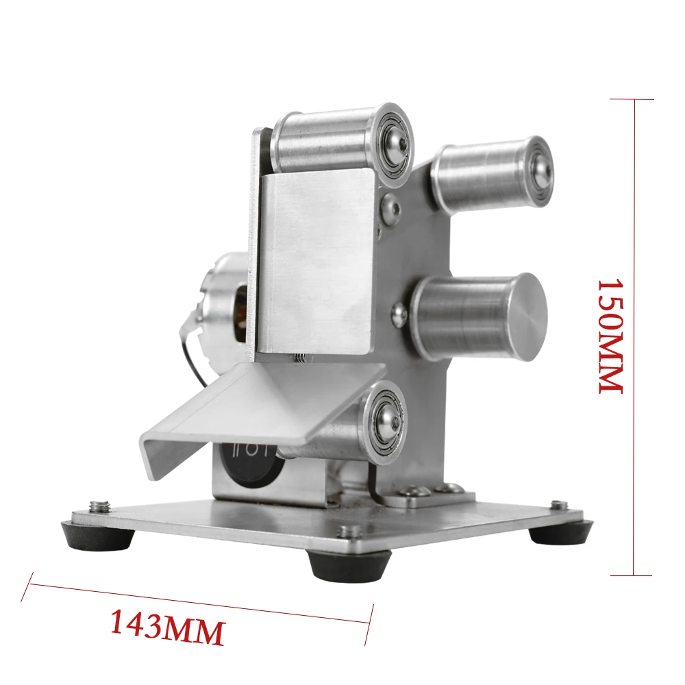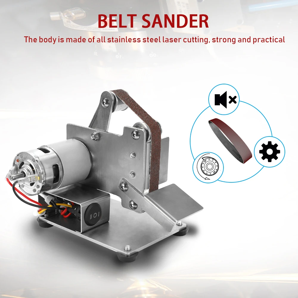 Это многофункциональный ленточный шлифовальный станок, мини портативный, низкий уровень шума, может использоваться для высокоскоростного стального сверла грубого шлифования, кромки лезвия, тонкого шлифования вольфрамовой стали токарного инструмента, полировки корня Бодхи, И т. Д., прост в установке и эксплуатации, это домашний инструмент DIY.