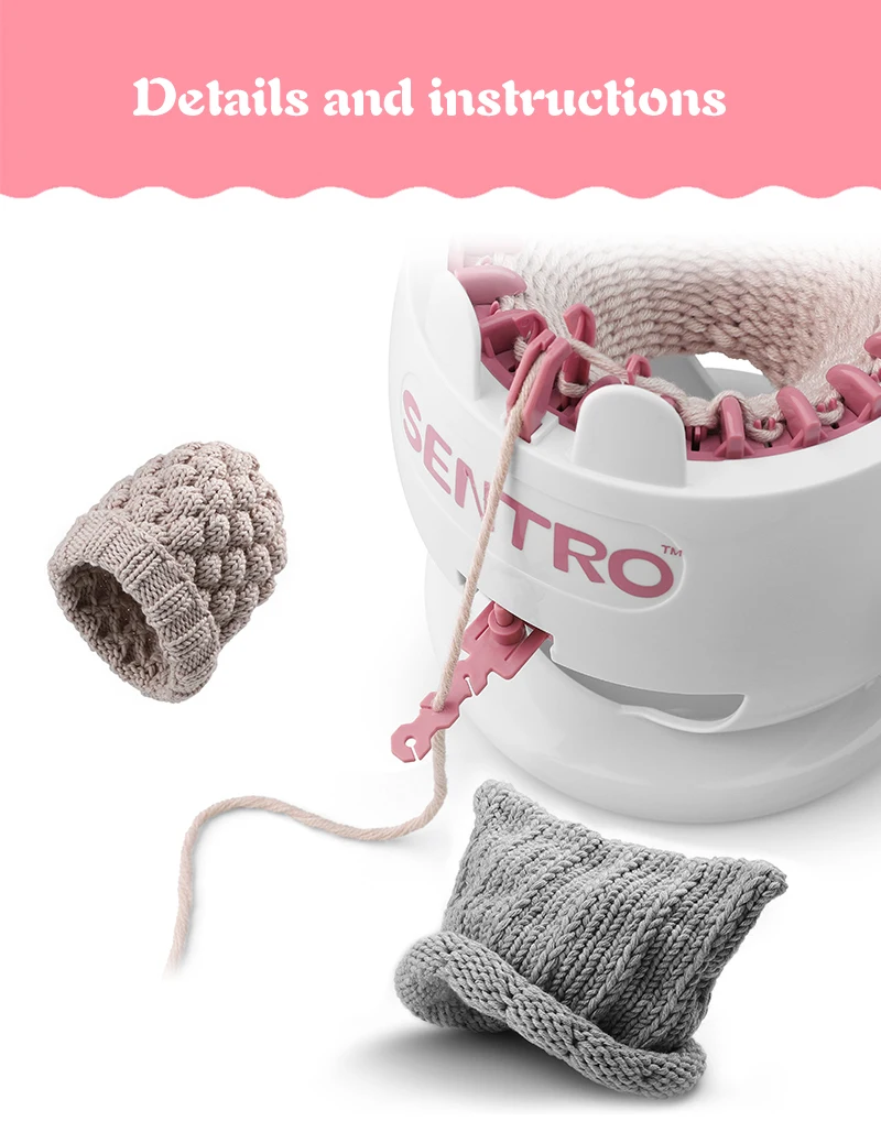 Эта ручная вязальная машина имеет двойной режим для удовлетворения различных потребностей. Т-образная вязка, после первого поворота к утечке зуба, начните вращение по часовой стрелке для плетения цилиндрической ткани, может использоваться в качестве шапки после окончания. Плоский трикотаж, вы можете отрегулировать ширину ткани в соответствии с вашими потребностями, и использовать иглу и вязание крючком, чтобы свободно соединять в шарф и т. Д.