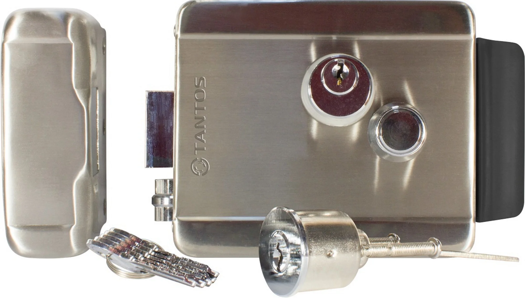 Накладной электромеханический замок Tantos TS-2369 Classic в корпусе из нержавеющей стали предназначен для запирания дверей, ворот, калиток с возможностью ручного или дистанционного открывания.