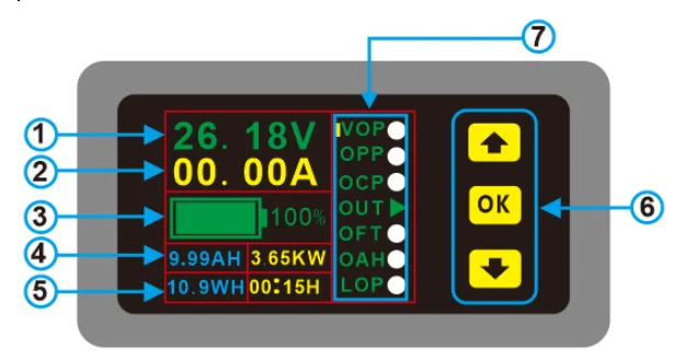 5. Voltage, current, charging capacity AH number, WH number, time, power are displayed at the same time, the display information is comprehensive and clear.