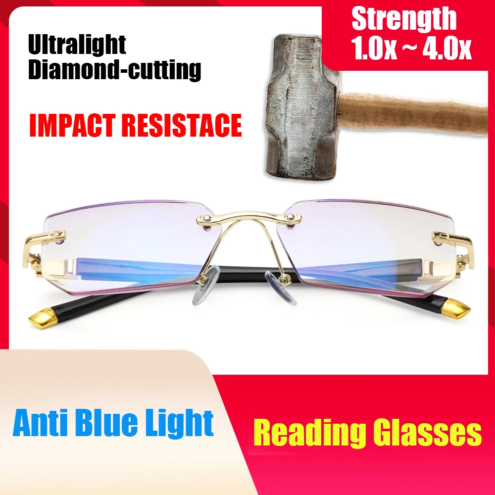 Новинка, модный анти-синий светильник, очки для чтения, женский и мужской светильник, весовая Весенняя петля, очки для пресбиопии, стильные очки без оправы