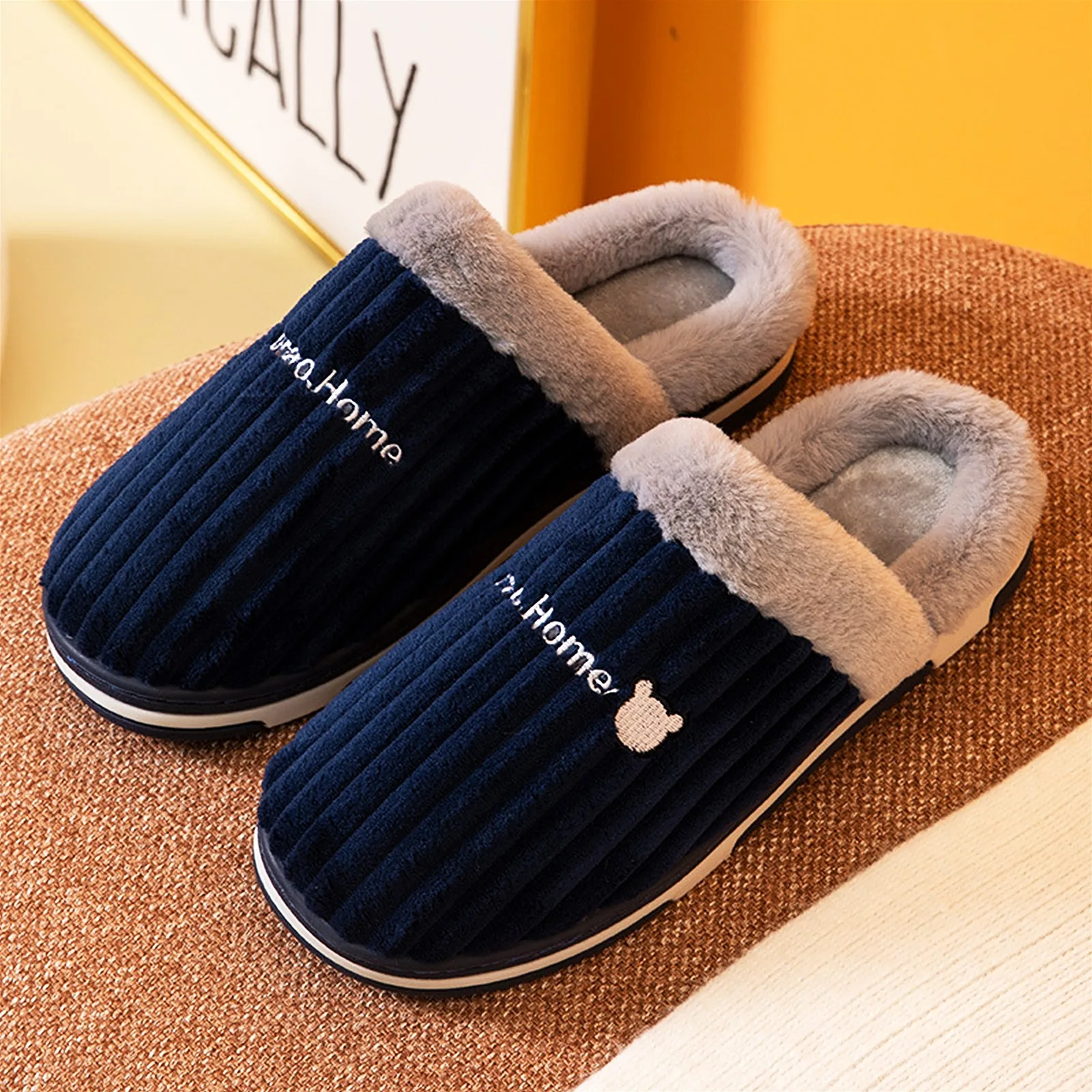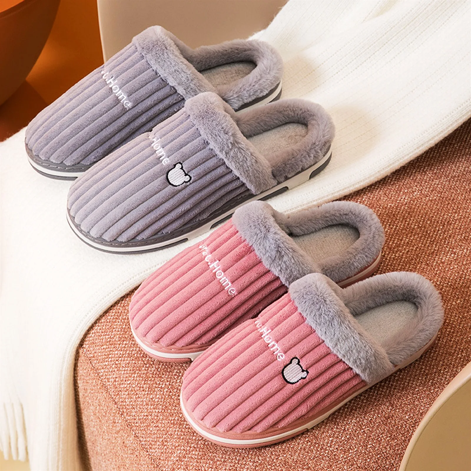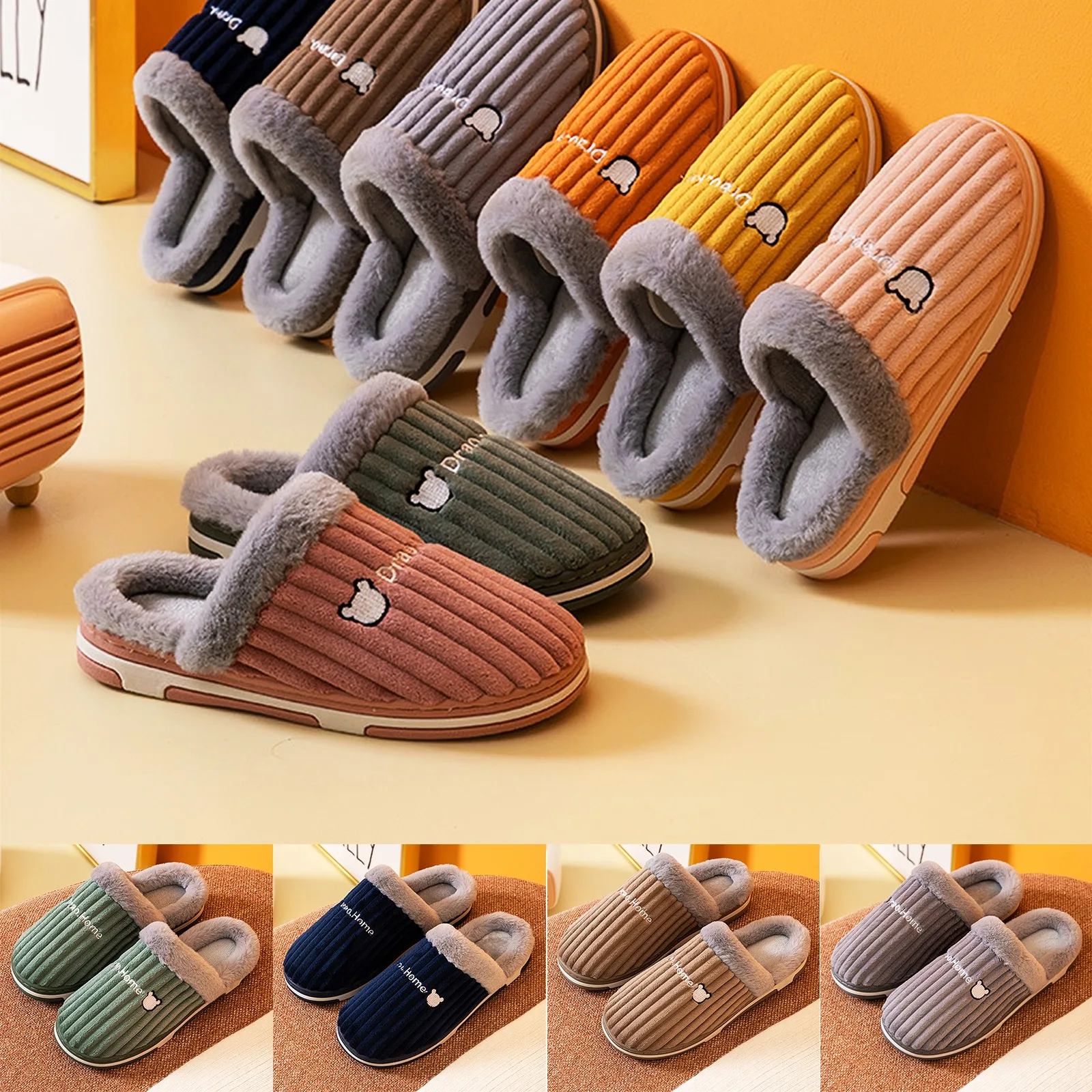 Характеристики: вельветовые домашние тапочки с кроличьим мехом для мужчин и женщин; Сезон осень-зима; Теплые хлопковые тапочки