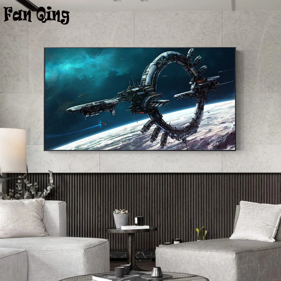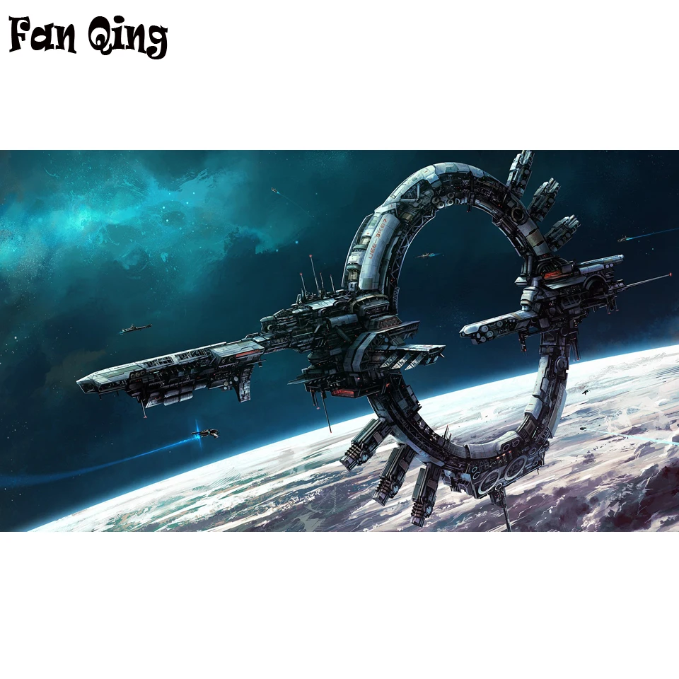 Полная Алмазная вышивка Diy 5D алмазная картина крестиком "Планета космический корабль пейзаж" полная дрель домашний декор для комнаты