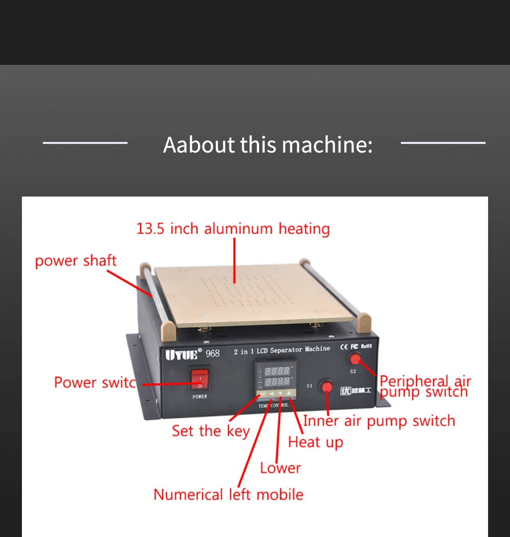 UYUE 968 14 дюймов встроенный воздушный двойной насос вакуумный насос ЖК-сепаратор экран Ремонт для IPad/Samsung планшет Ремонт машина комплект