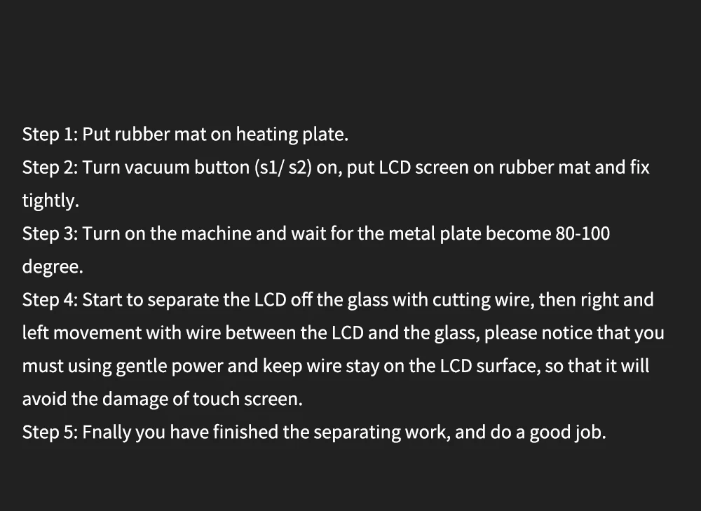 Шаг 2: Включите вакуумную кнопку (s1/ s2), поместите ЖК-экран на резиновый коврик и плотно закрепите.